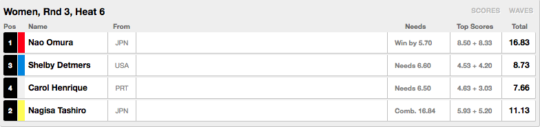 一方の大村奈央はラウンド4のヒート12でNikki Van Dijik(AUS)、