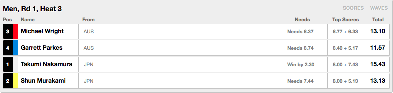 QS6000”Australian Open of Surfing”のDAY1が無事終了となった。