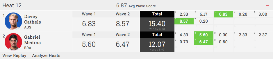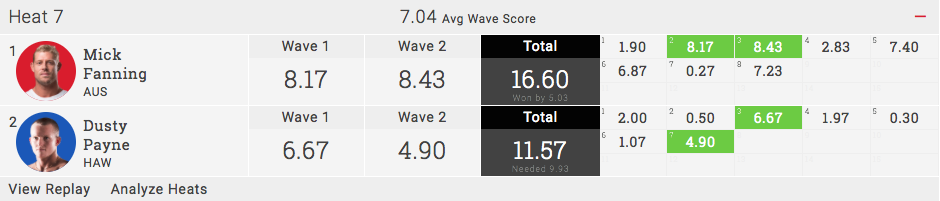 Mick Fanning(AUS)がこの日のハイエスト・トータルスコアとなる