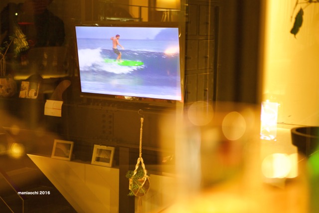 店内になる巨大なモニターにはサーフムービーが流れ