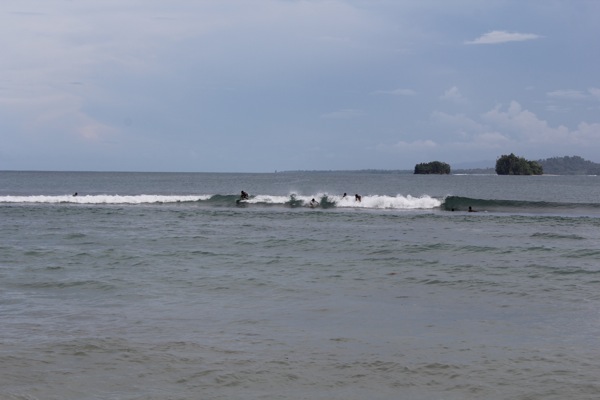 子どもポイントは滞在中に見た中で一番混雑していたポイントだった。みんな木の板きれを持ち出して沖に出て行き、わいわいしながら海パンも着ないで楽しそうにsurfingを楽しんでいた。