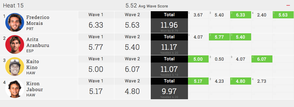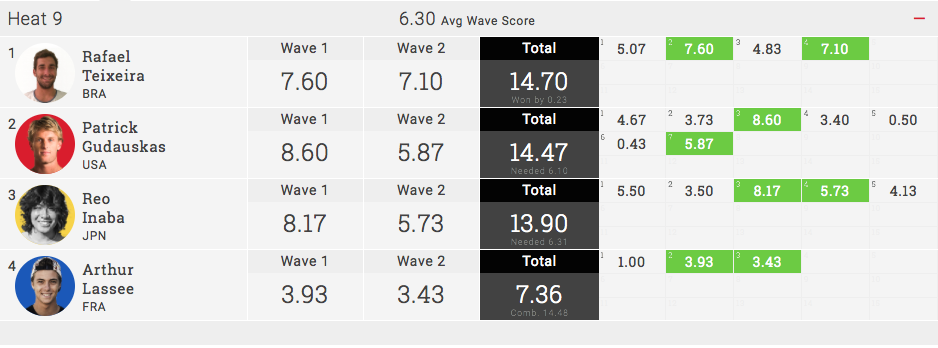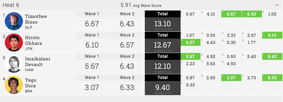 ラウンド4のヒート6ではImai Devault(HAW)、Yago Dora(BRA)といった