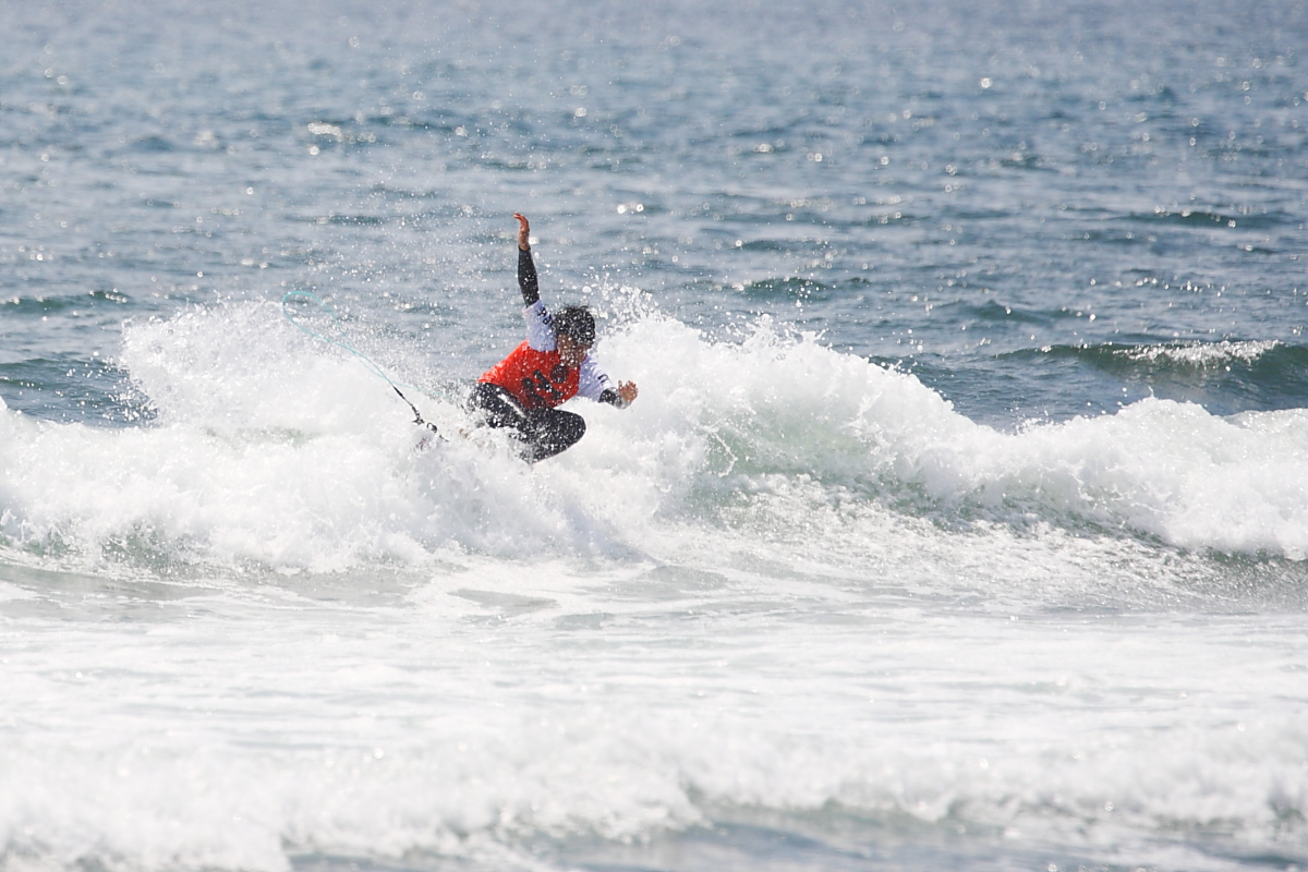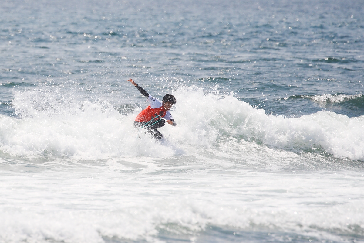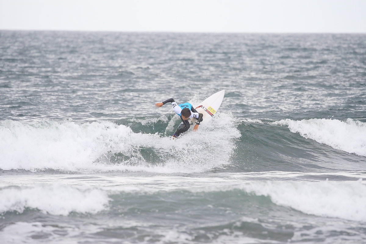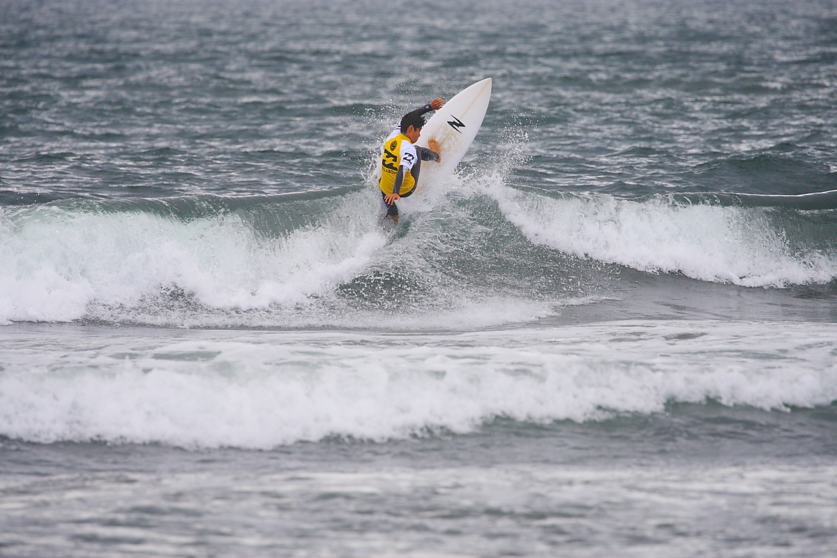 ホームブレイクの利を活かし、ラウンド2のヒート2で平原颯馬を下して見事クォーターファイナル進出を決めた堀越類。若手プロサーファー堀越力の実弟でもある。Rui Horikoshi.