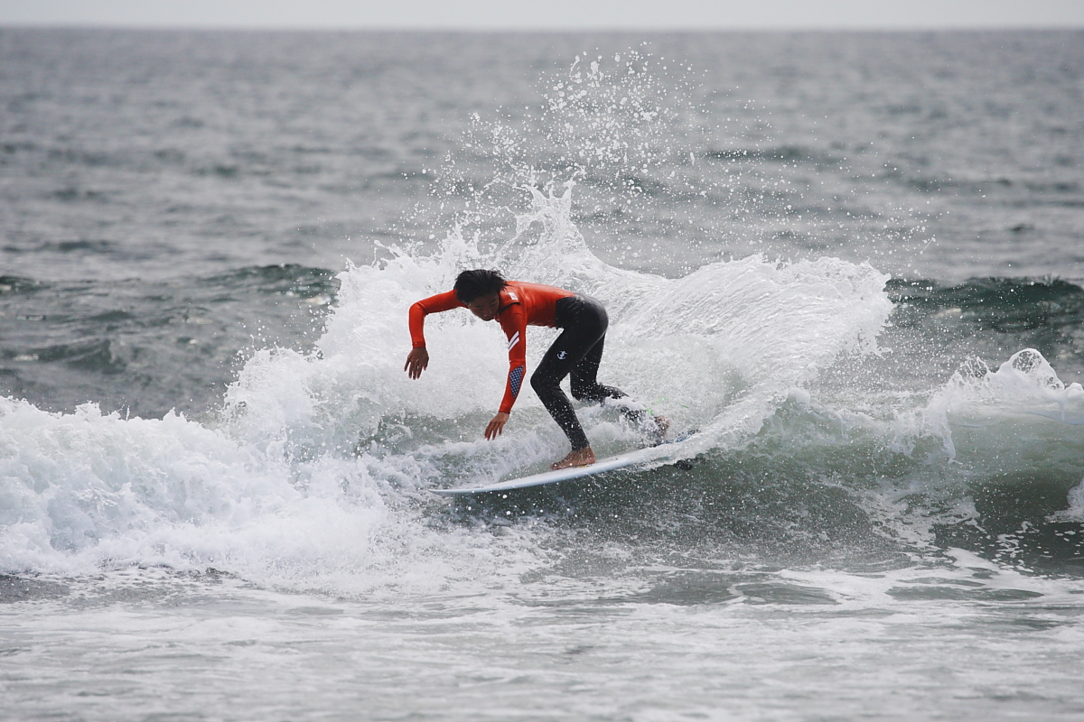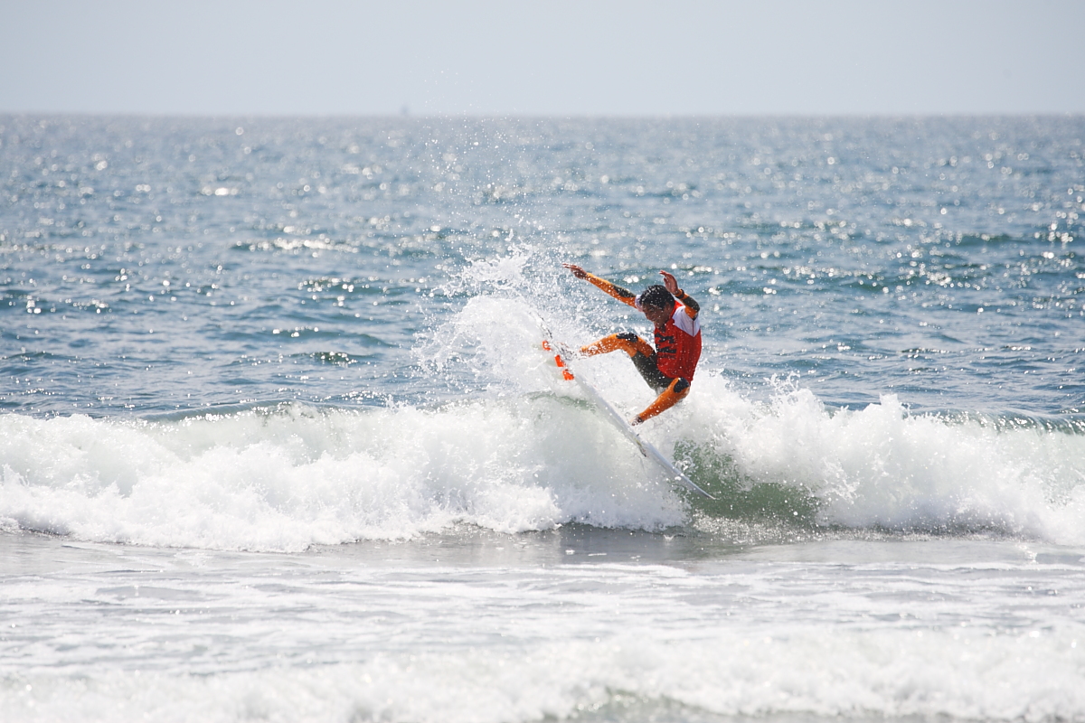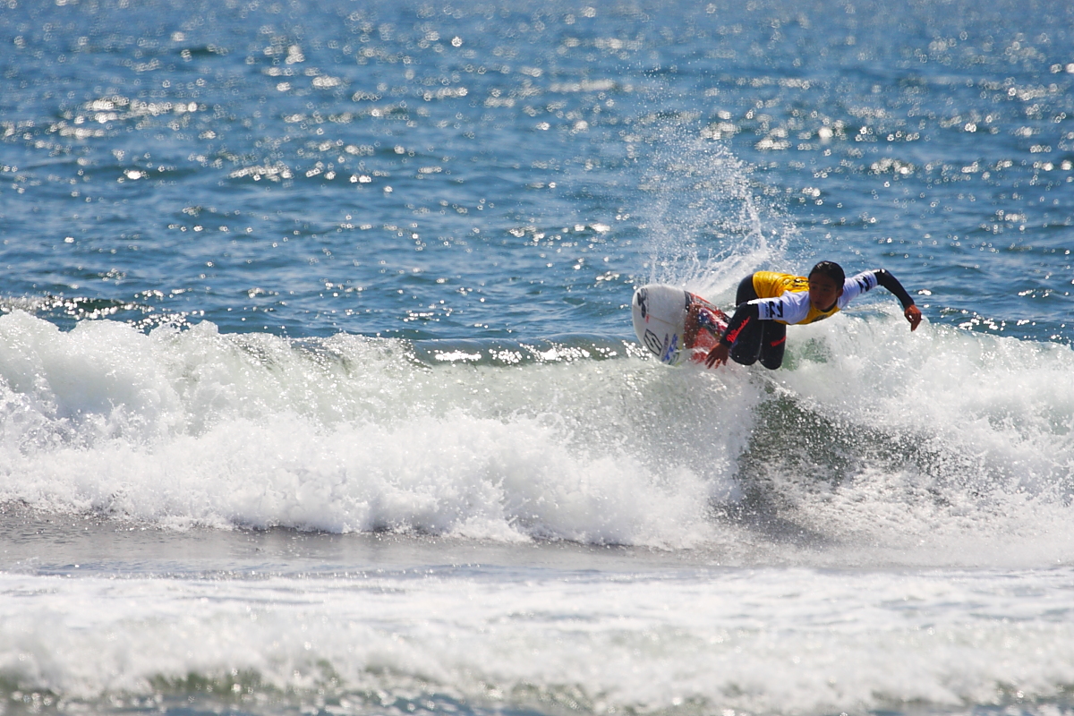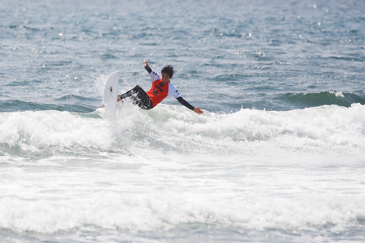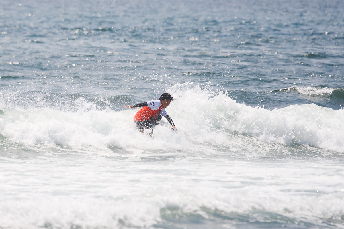 ホームブレイクの利を活かし、ラウンド2のヒート2で平原颯馬を下して見事クォーターファイナル進出を決めた堀越類。若手プロサーファー堀越力の実弟でもある。Rui Horikoshi.