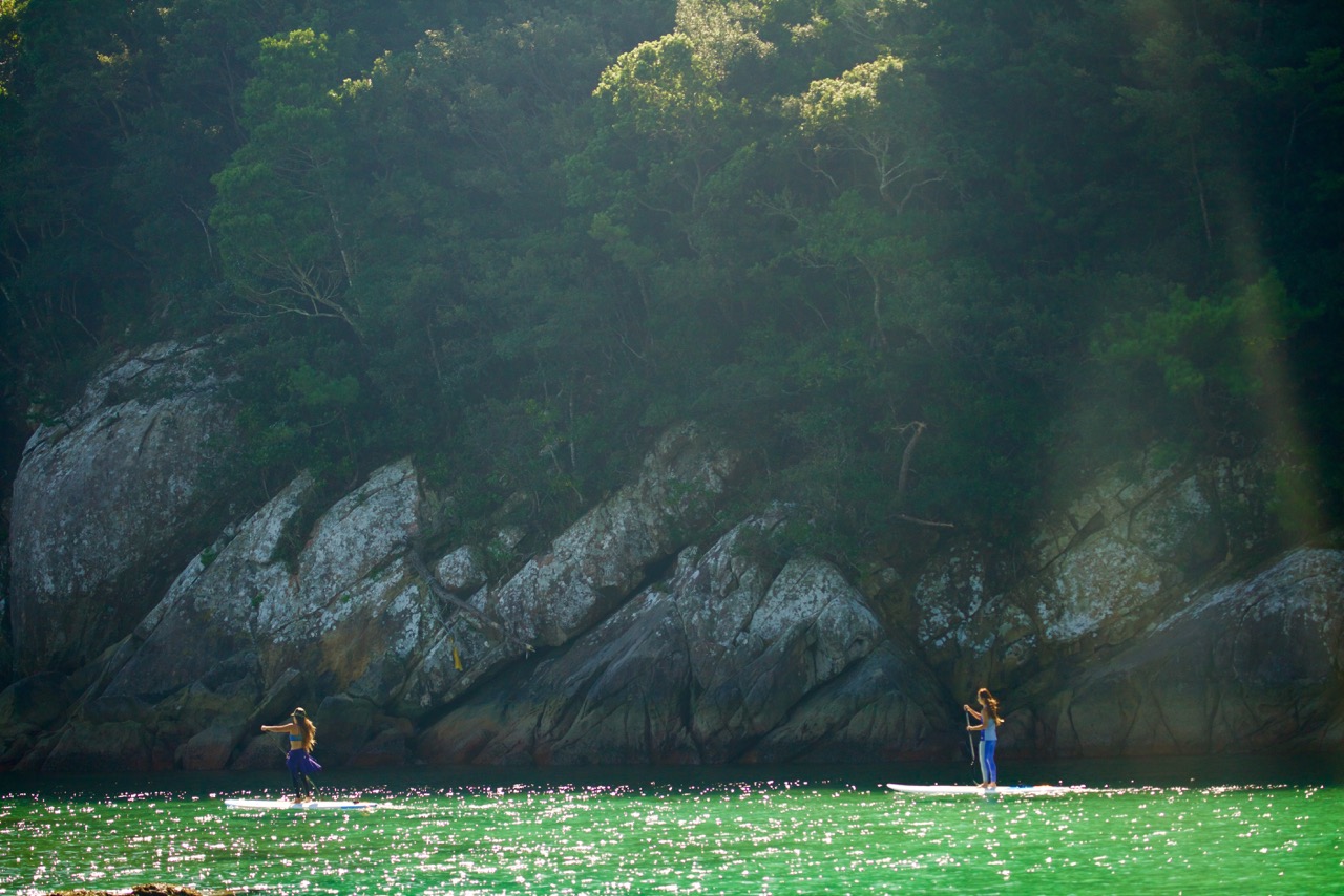 優雅にSUPクルーズする二人の姿から
