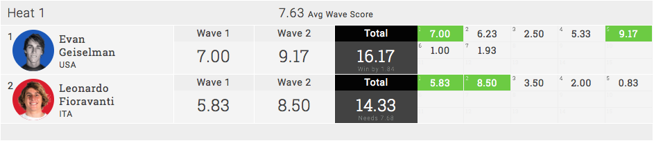 注目のイタリア出身のサーファーLeonardo Fioravantiによる対戦。