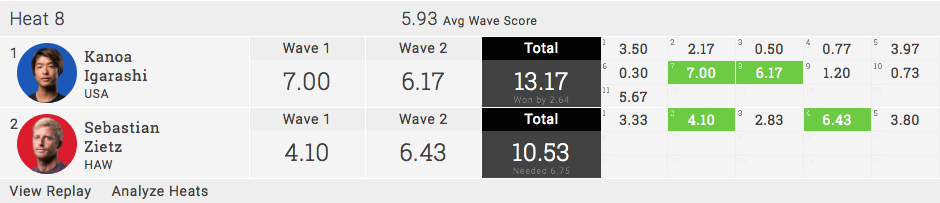 そんななか、ラウンド2のヒート8では日本期待のカノア五十嵐が