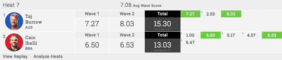 見事ラウンド3へ進出を果たし、ヒート10ではJohn John Florence(HAW)と対戦。