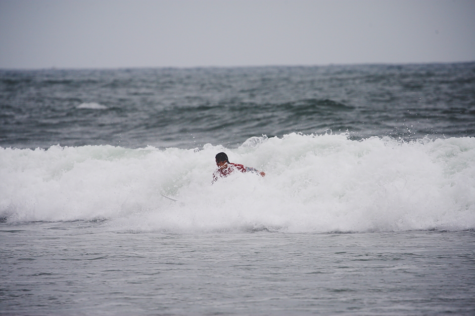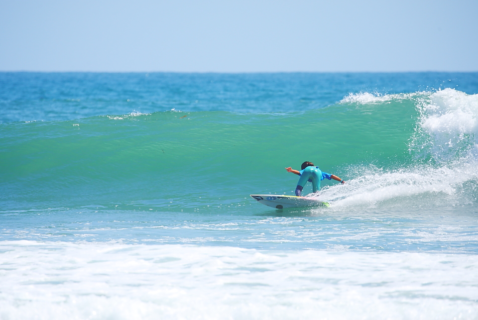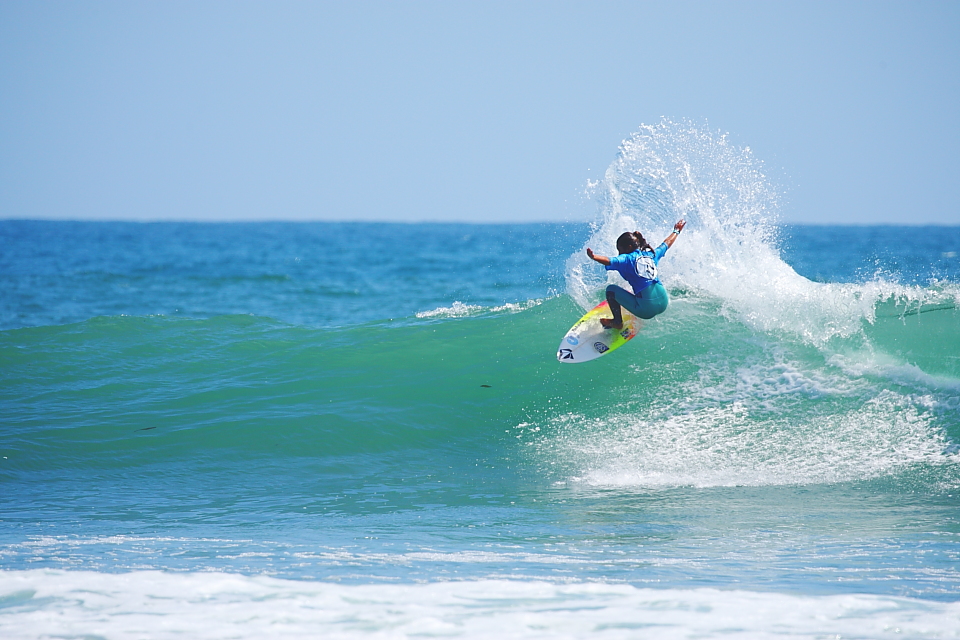 ヒート開始早々この日最大級の特大セットが4、5本押し寄せ、その後ピタリと波が入らなくなり、海のリズムと同調するのが難しいタイミングでの15分ヒートとなり、最終的にはいい波を掴むことなくヒート終了となってしまった宮坂莉乙子。正直、今回のトリップでそのサーフィンの上手さに驚かされたひとり。いい波に乗れば十分チャンスはあっただけに残念な結果となった。今後のさらなる活躍に期待!!Rioko Miyasaka.