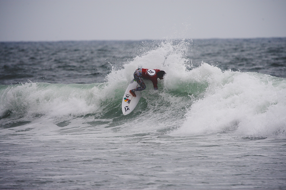 南からのサイドオンショアを喰らい、乗りづらく手強いコンディションに翻弄され、実力を出し切れないまま敗退となってしまった松下諒大。今回のカリフォルニアではそのパンキッシュなサーフィンがひときわ光っていただけに残念な結果となったが次回の活躍に期待したい!Ryota Matsushita.