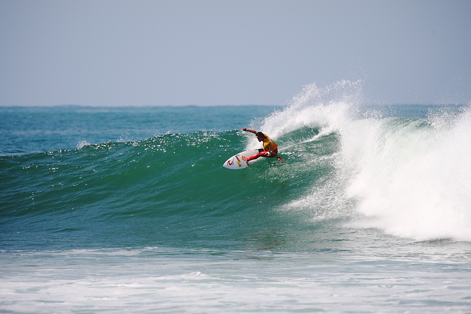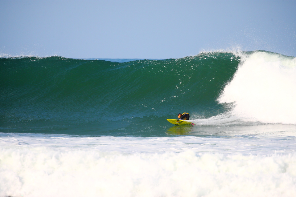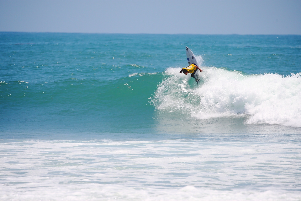 逆転の可能性を秘めていた最後の波の3回目のターンでワイプアウトしてしまい、Pro-Amのクォーターファイナルで敗退となってしまった佐藤魁。まるで和製Bobby Martinezと呼びたくなるような波に張り付くカーヴィングスタイルが持ち味。今大会では島田碧人のコーチ役も務めるなど、後輩たちに対する気配りも厚く、人間的にも成長した姿を垣間見せてくれた。Guy Sato.
