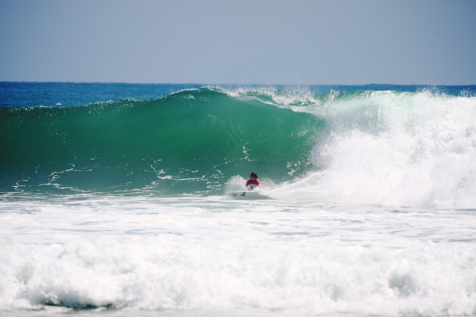 波とのサイクルがまったく合わず、その実力を発揮できないまま無念にもヒート終了を迎えたPro-Am代表の脇田泰地。ノースショアの過酷な環境で育っただけあり、海外に来てもまったく物怖じすることのないその気持ちの強さはさすが。ロウワーズの波には特別な思い入れがあるようで今回の敗退はそうとう悔しそうな様子だったが、次回の活躍に期待したい!Taichi Wakita.