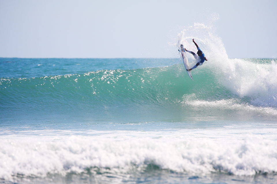 サンクレメンテ出身のロコボーイであり、Juniorクラスに出場の小林圭は当たり前かのごとくセミファイナル進出をメイク。力の抜きどころと入れどころのメリハリが 際立つ素晴らしいサーフィンを披露していた。Kei Kobayashi.