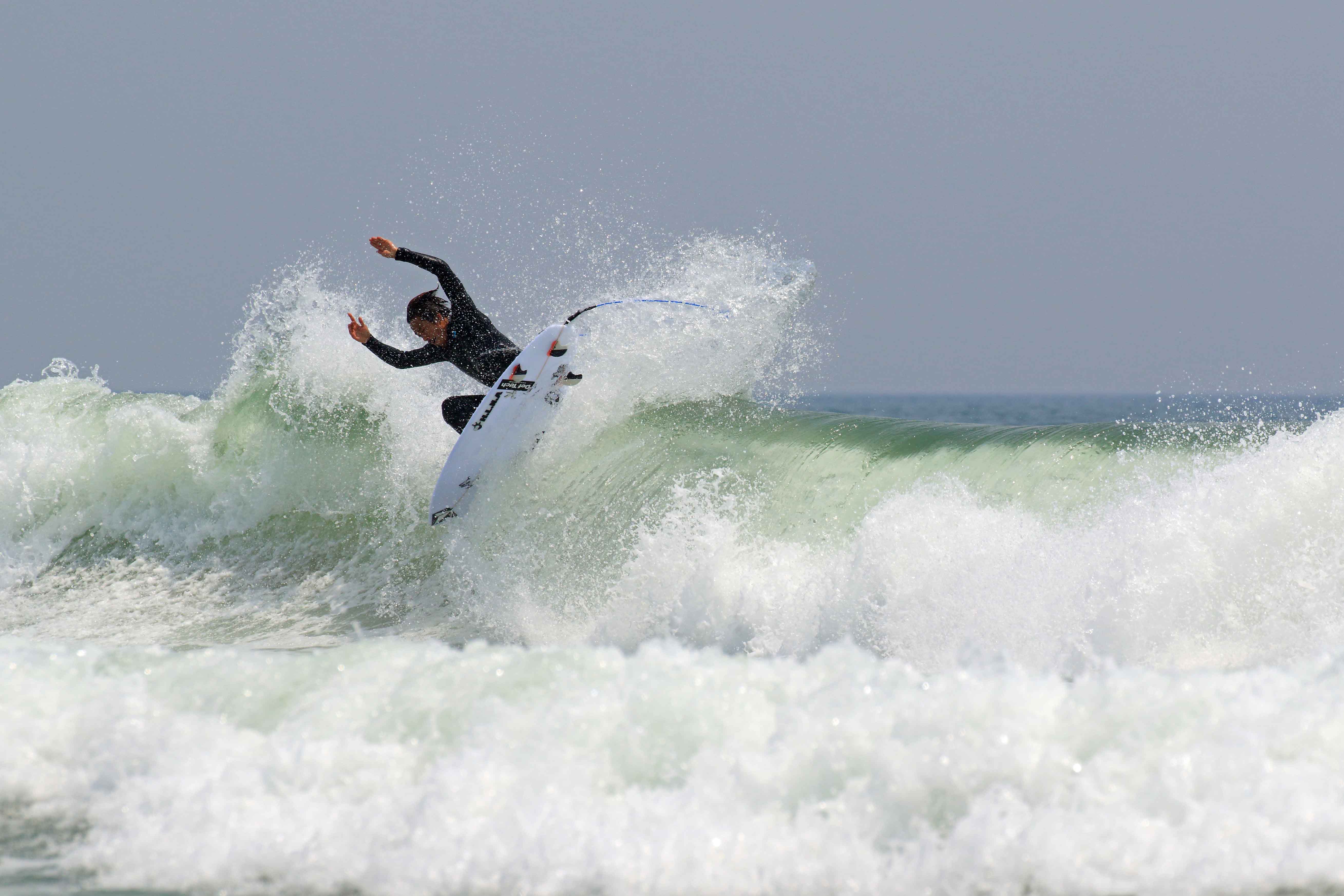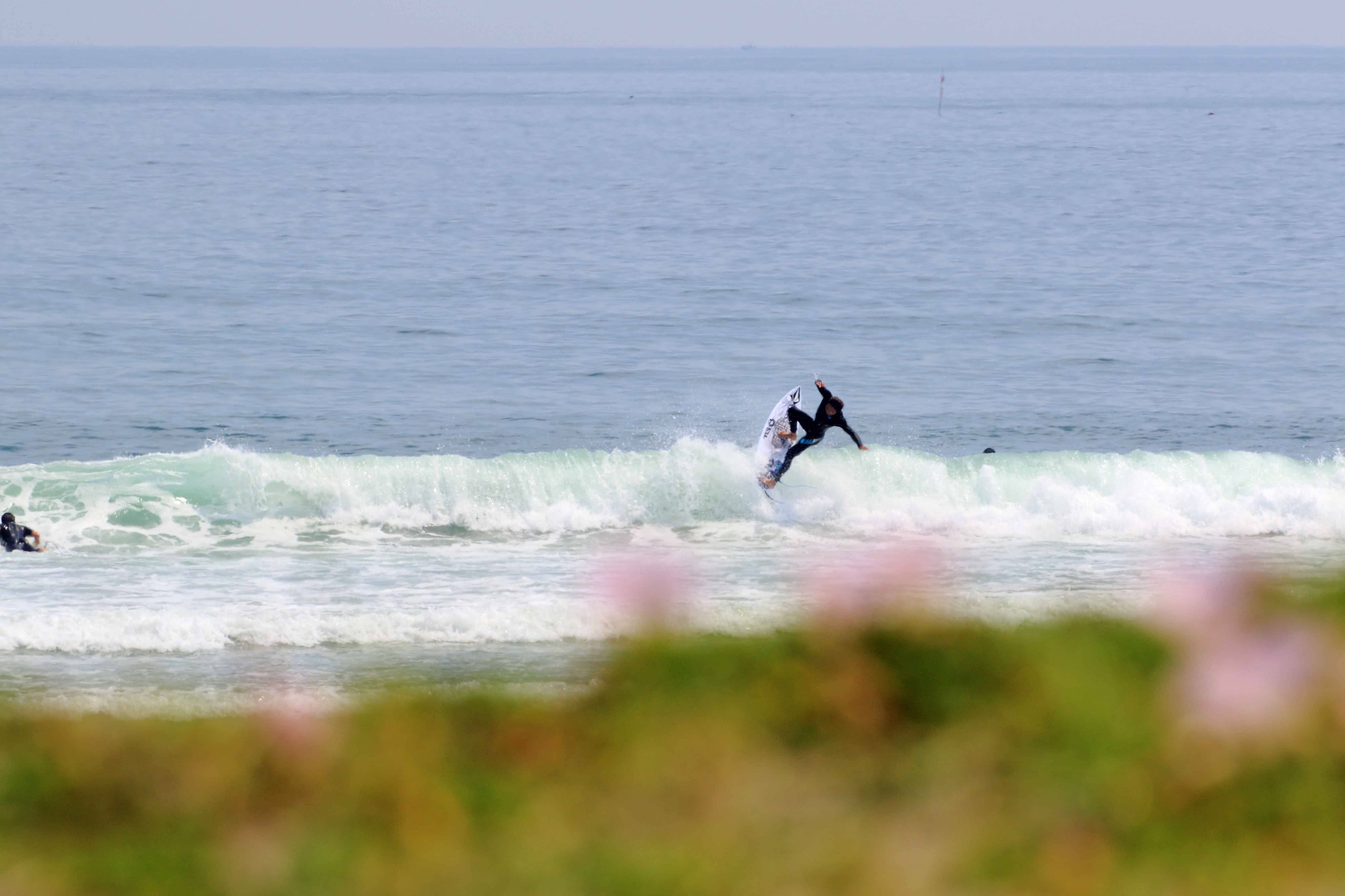 鈴木勝大、辻裕次郎はいつもと違うスイッチスタンスでエンジョイサーフ。