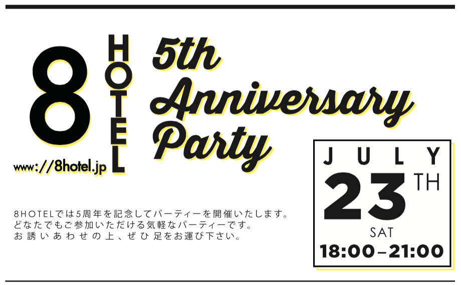 5周年記念を祝したパーティーを来たる7/23(土)の18:00から21:00までで開催。