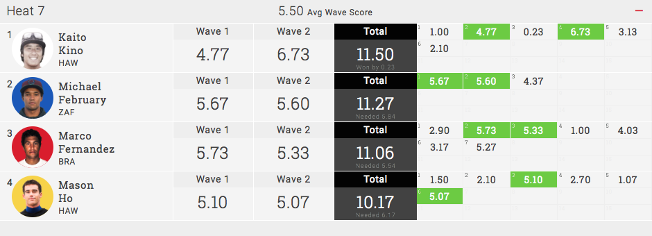 大原洋人のラウンド3のヒート2と共にプロジュニアのクォーターファイナルからが