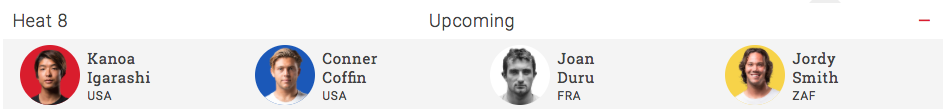 カノア五十嵐が出場する予定となっているラウンド3のヒート8をはじめ、