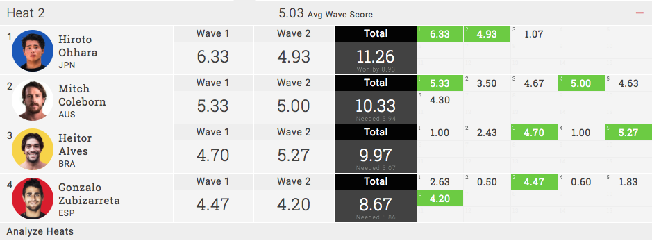 ラウンド3のヒート2に出場した大原洋人はMitch Coleborn(AUS)、