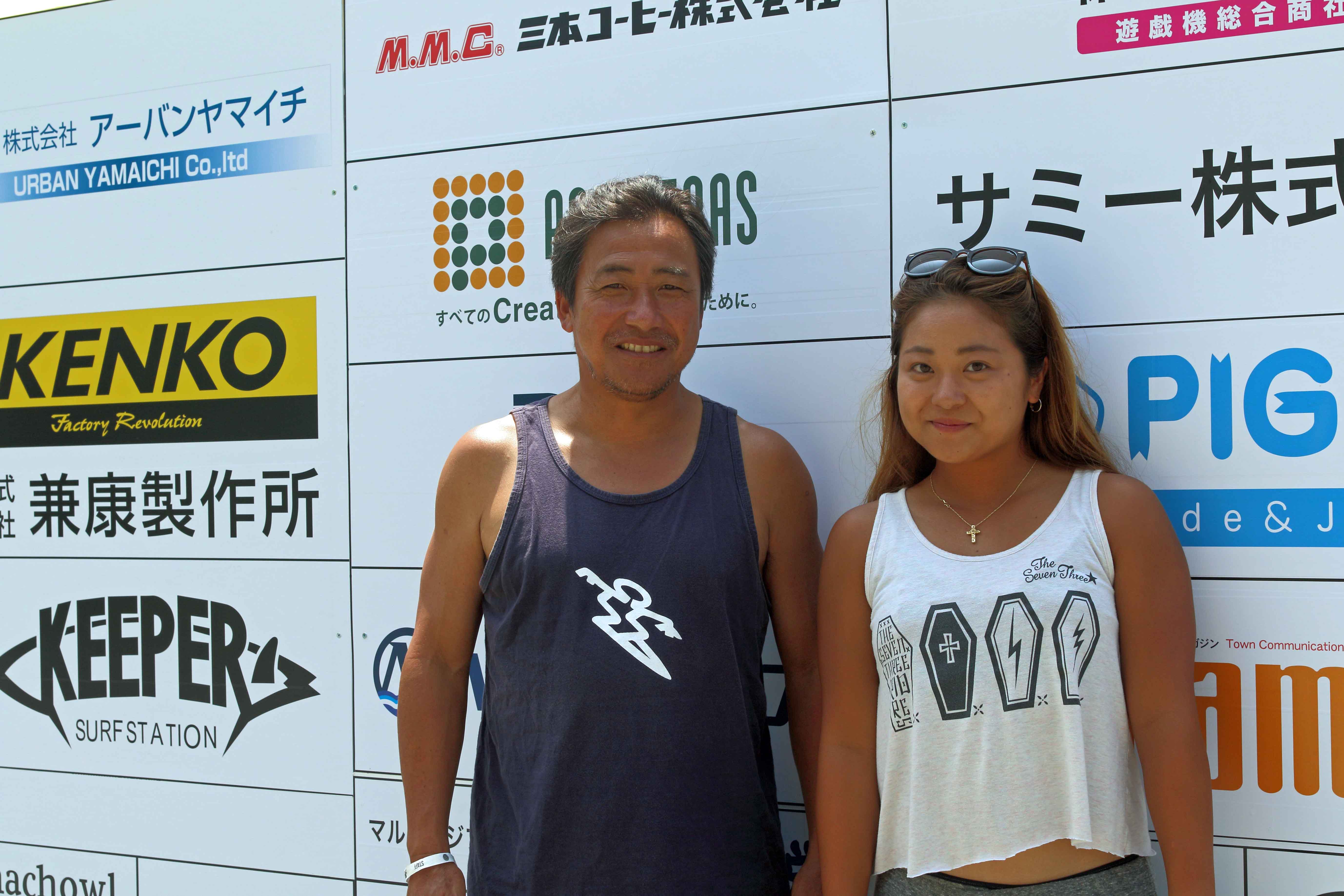 hサーフボードのシェイパー鈴木弘章氏と娘のマリーン。