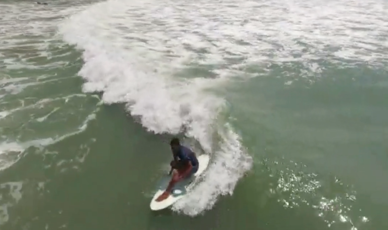 長いレフトのポイントブレイクを自由気ままにグライドする