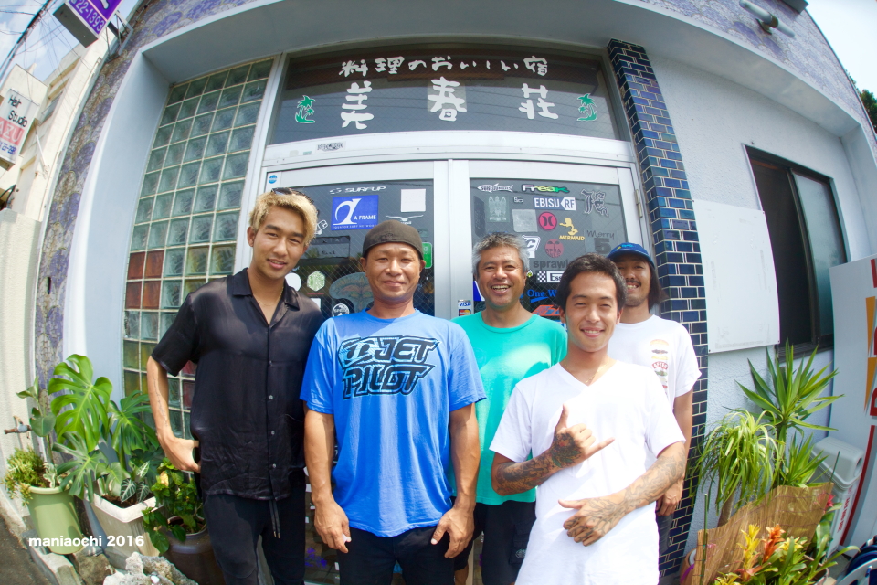 今回、撮影するにあたり種子島を見守る島生まれ、島育ちのレジェンドサーファーかっちゃんこと酒井さんが経営する西之表の料理の美味しい宿、美春荘 と種子島を代表する美春荘が経営するサーフショップ ORIGIN 一平さんにご挨拶に伺い、いつもご理解とご協力を頂き感謝とともに今回の種子島セッッションのスタートとなった。