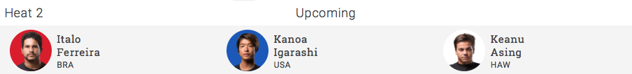 注目のカノア五十嵐はラウンド1のヒート2でItalo Ferreira(BRA)と