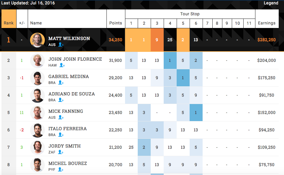 依然ランキングトップを独走するのはMatt Wilkinson(AUS)。