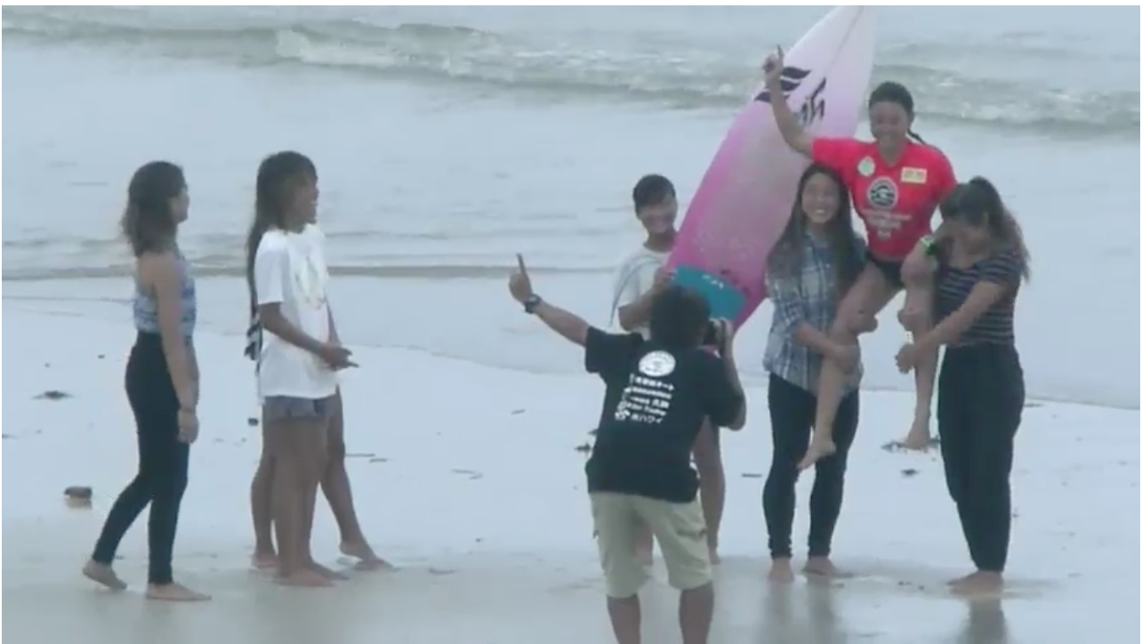 ここで優先権を使った川合美乃里が2本目となるグーフィーの波を掴むが、