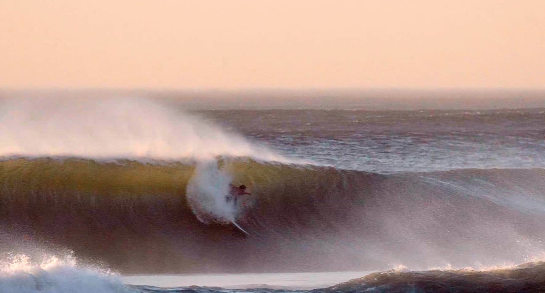 ギリギリのタイミングでチューブになだれ込む一級品のレイトテイクオフ、