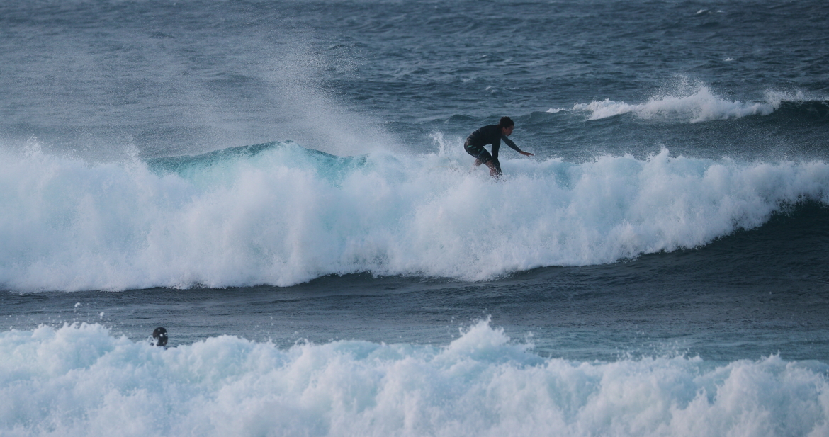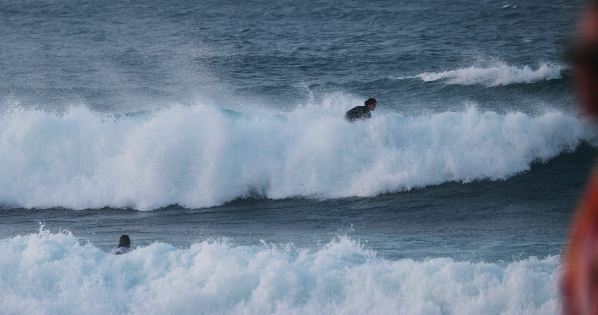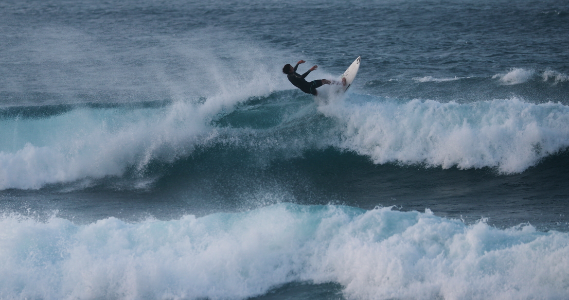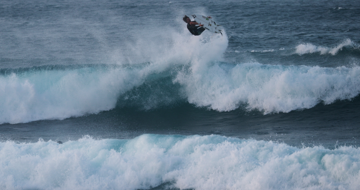 さすがVOLCOMのトップライダーをつとめるだけあり、1発目にはシフティーを入れたスラブエアに、2発目にはからありえない縦回転エアリバースをメイクしたかと思うと、なんと3本目ではバックフリップ気味な3D回転のフロントサイド・ダブルグラブ・フルローテーションエアをメイク!!!