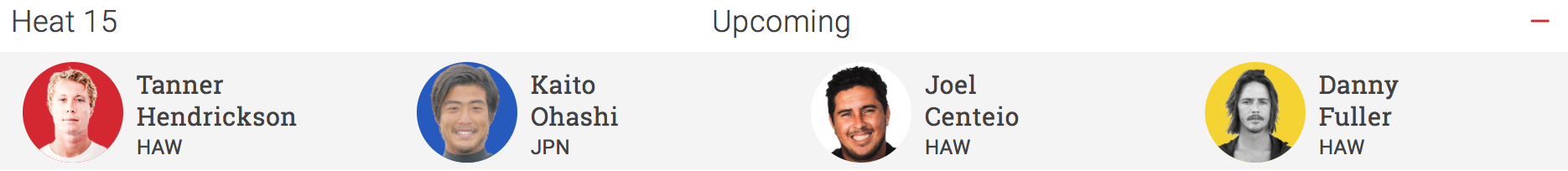 このことによってラウンド3のヒート15に出場の大橋海人のヒートはハワイ時間の1/27(金)am8:00、日本時間の1/28(土)am3:00からスタート予定に持ち越される形となった。