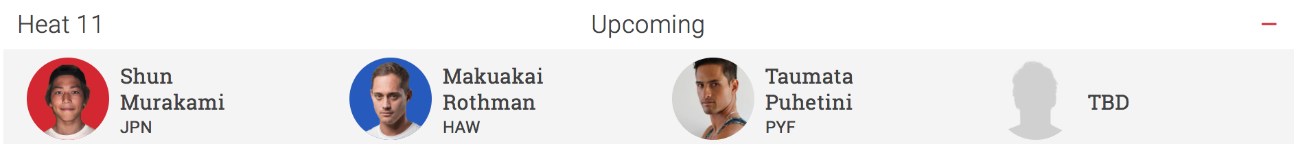 この波を舞台にVOLCOM PIPE PROのDAY1が行われ、ラウンド1の全ヒートとハワイアン・トライアル・ヒートのみが消化された。