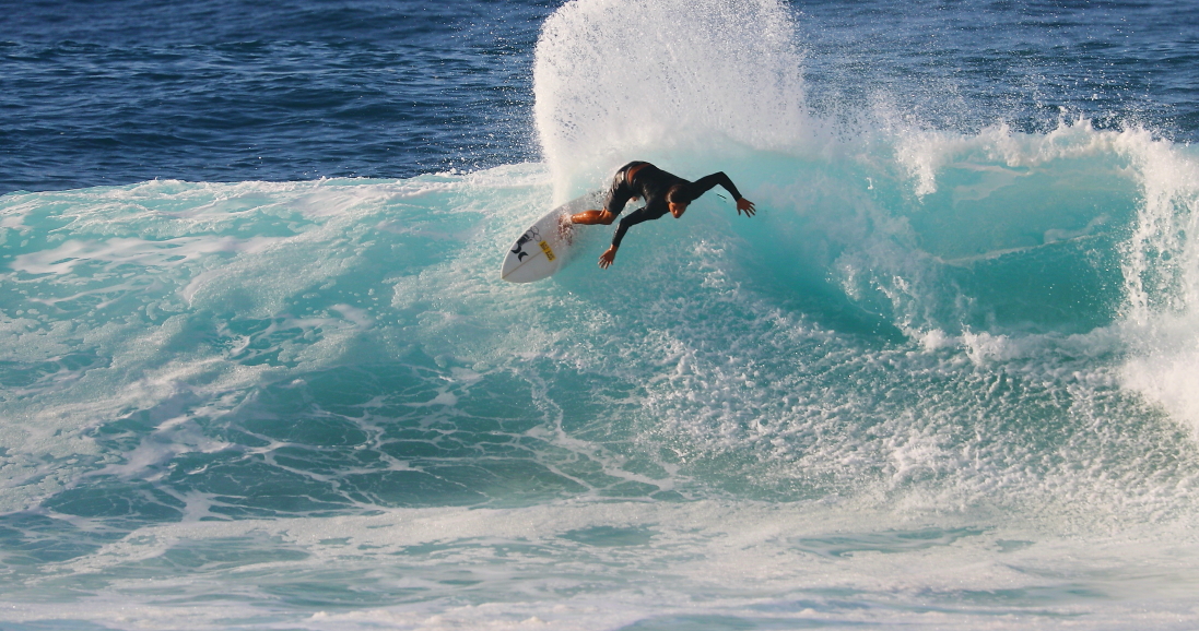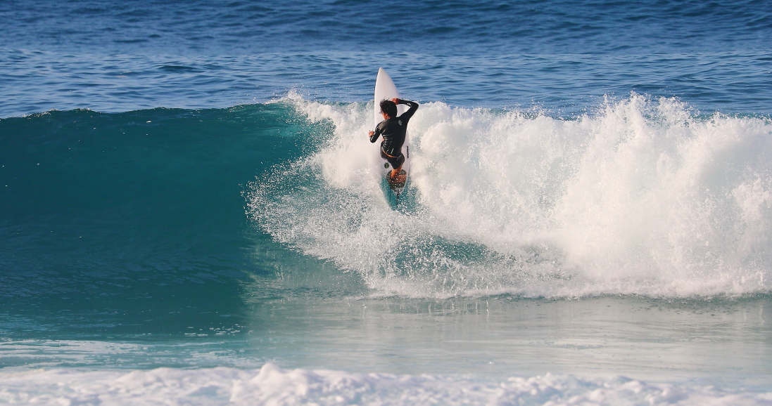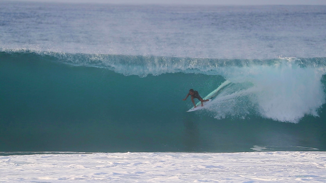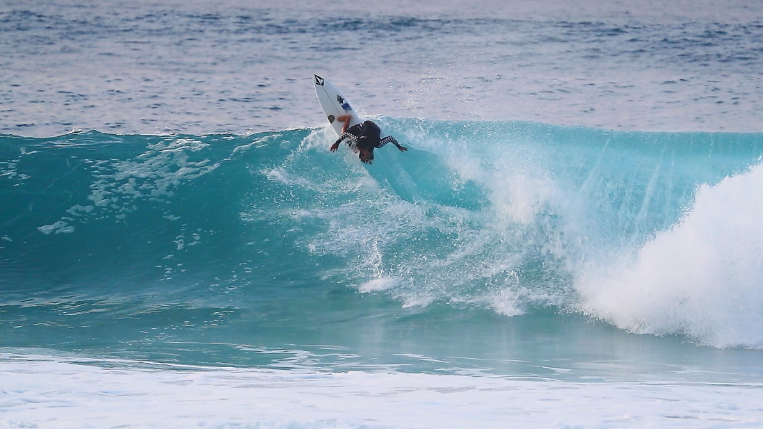パイプライナー脇田貴之の息子としてノースショアにも拠点を持ち、もはやノースショアボーイの一員としての特権を持ってしてノースショアの海を自由に動き回る脇田泰地。
