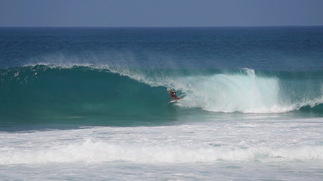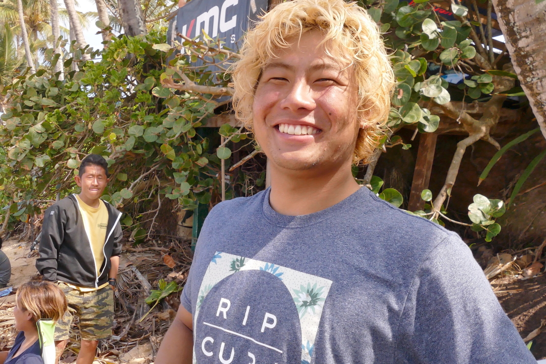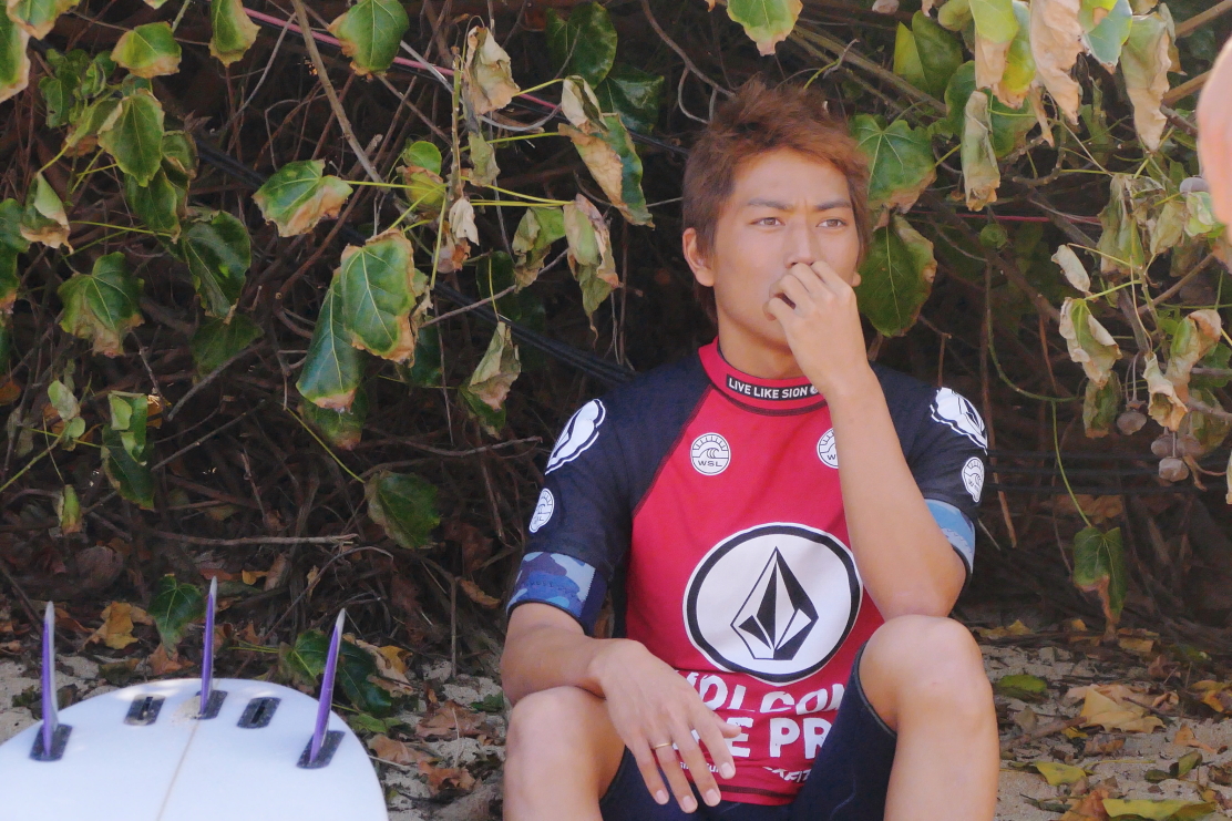 徐々にうねりの向きがノースから西寄りのウエスト・スウェルに変化し始めた時間帯にあたったこのヒートにおいて、それをいち早く察知し、それまでは全くブレイクしていなかったパイプの波を見つけてチューブをメイクするも小ぶりでチューブもショートレンジだったことから2.00ptとスコアを伸ばすことができず、さらに2本目に掴んだバックドアの波でチューブの中を長い間トラベリングするも、出口で痛恨のワイプアウトとなり、スコアも1.73ptにとどまる。