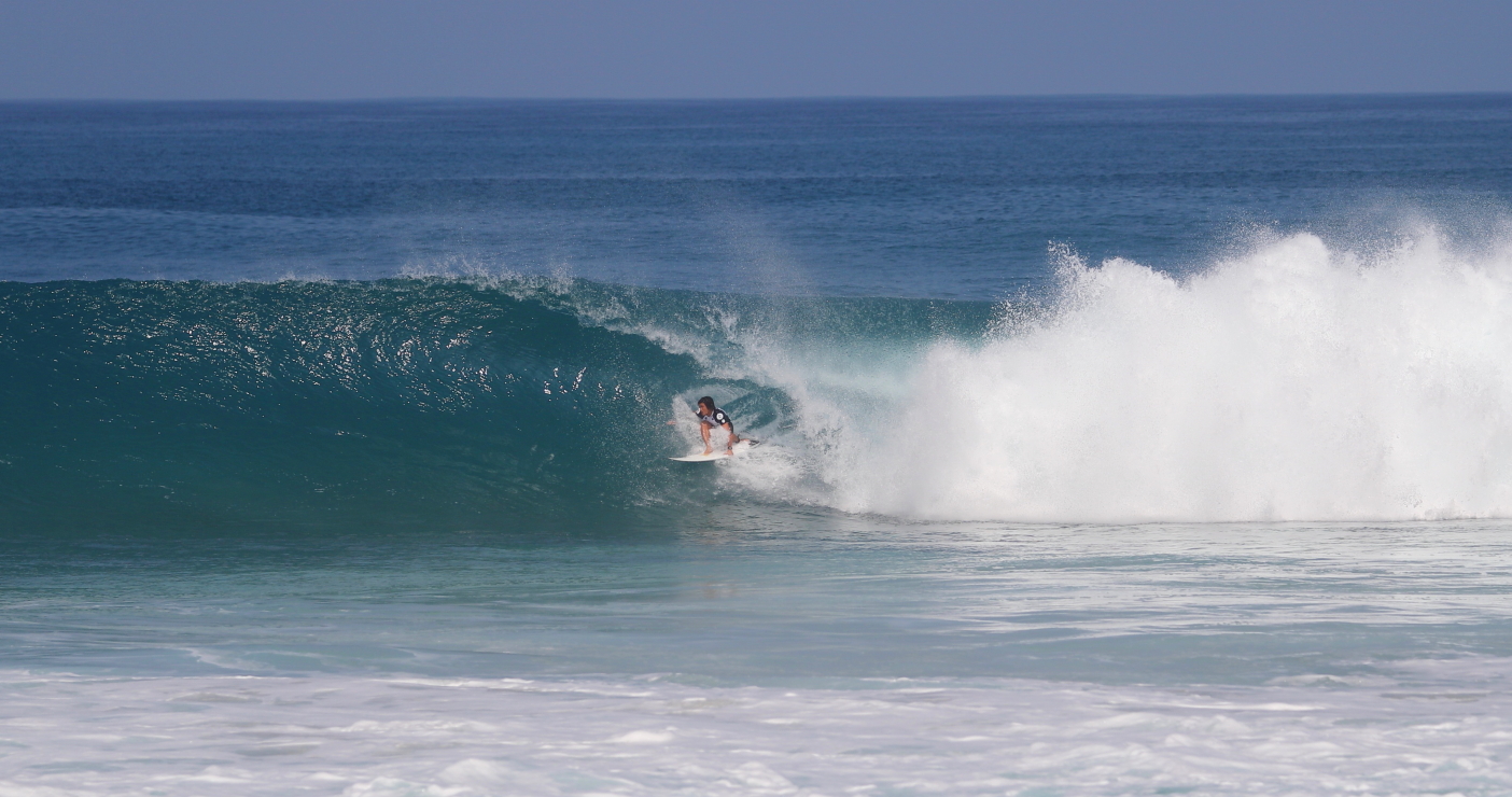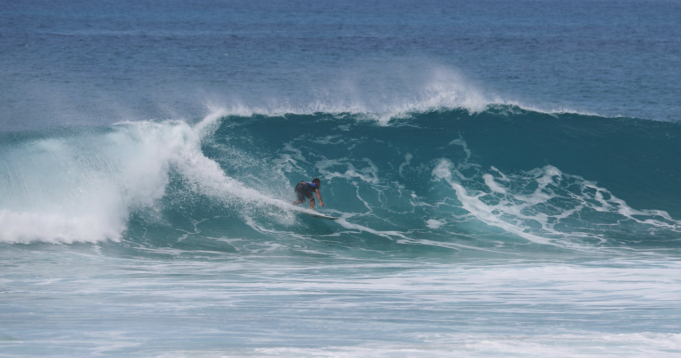 過去にはVOLCOM PIPE PROでエクセレントスコアをマークし、クォーターファイナル進出を果たした経験を持つ村上舜の活躍に期待が集まったが、数日前に連日続いたストーミー・コンディションのおかげでサンドバーが動き、まるで違う場所のような波と化したパイプ、バックドアの波に翻弄される形となり、ヒートを通していい波を掴むことができず、本領発揮と行くまでもなく残念ながらここで敗退。