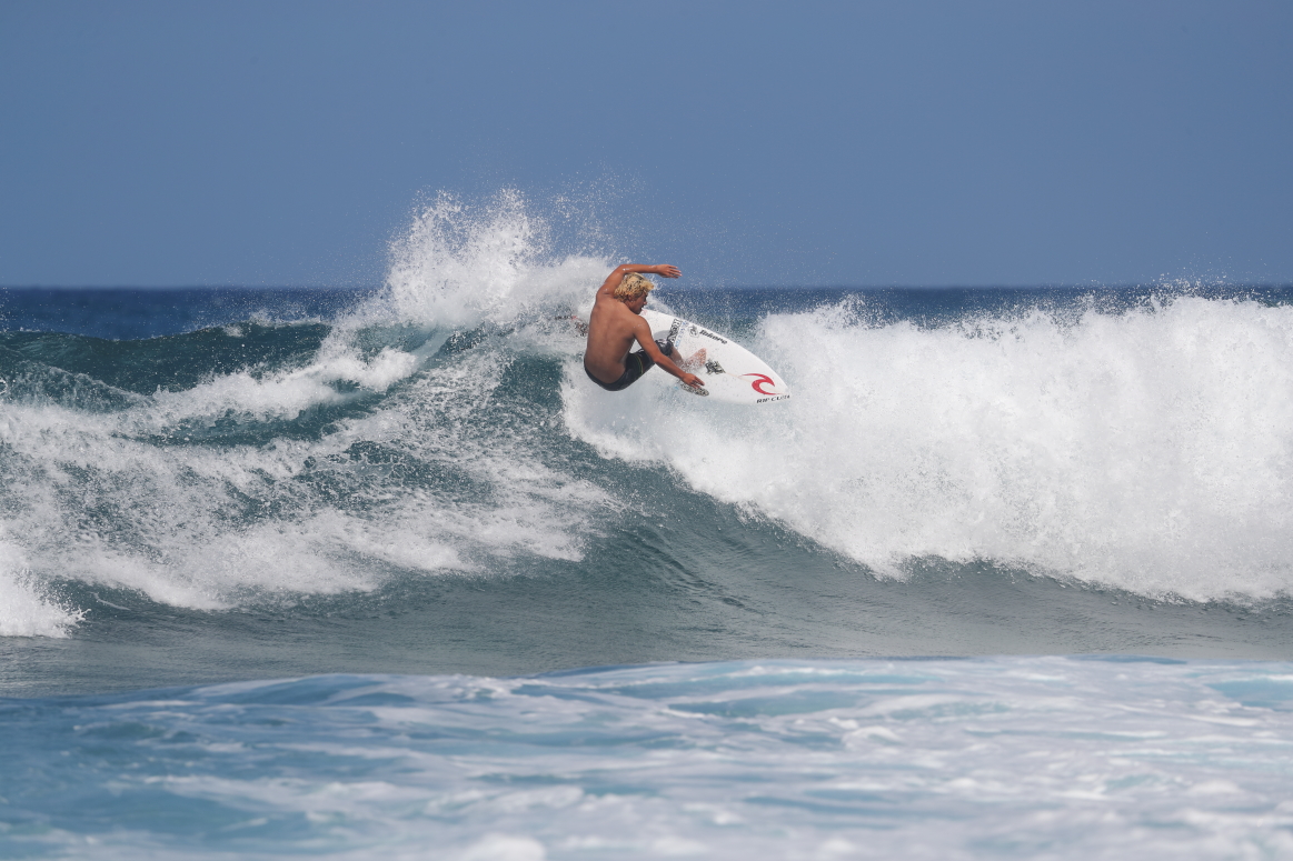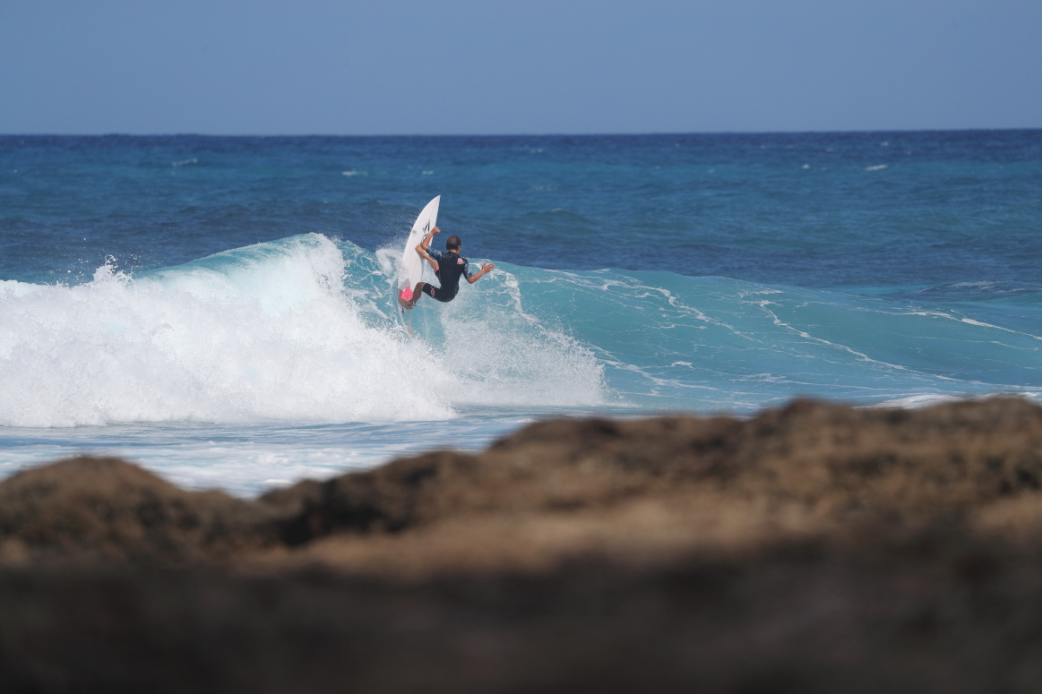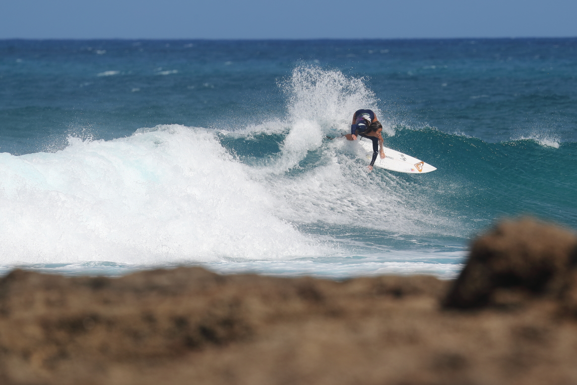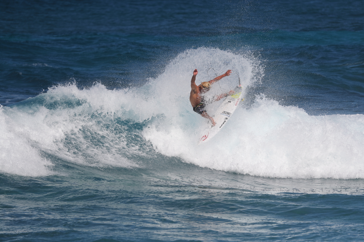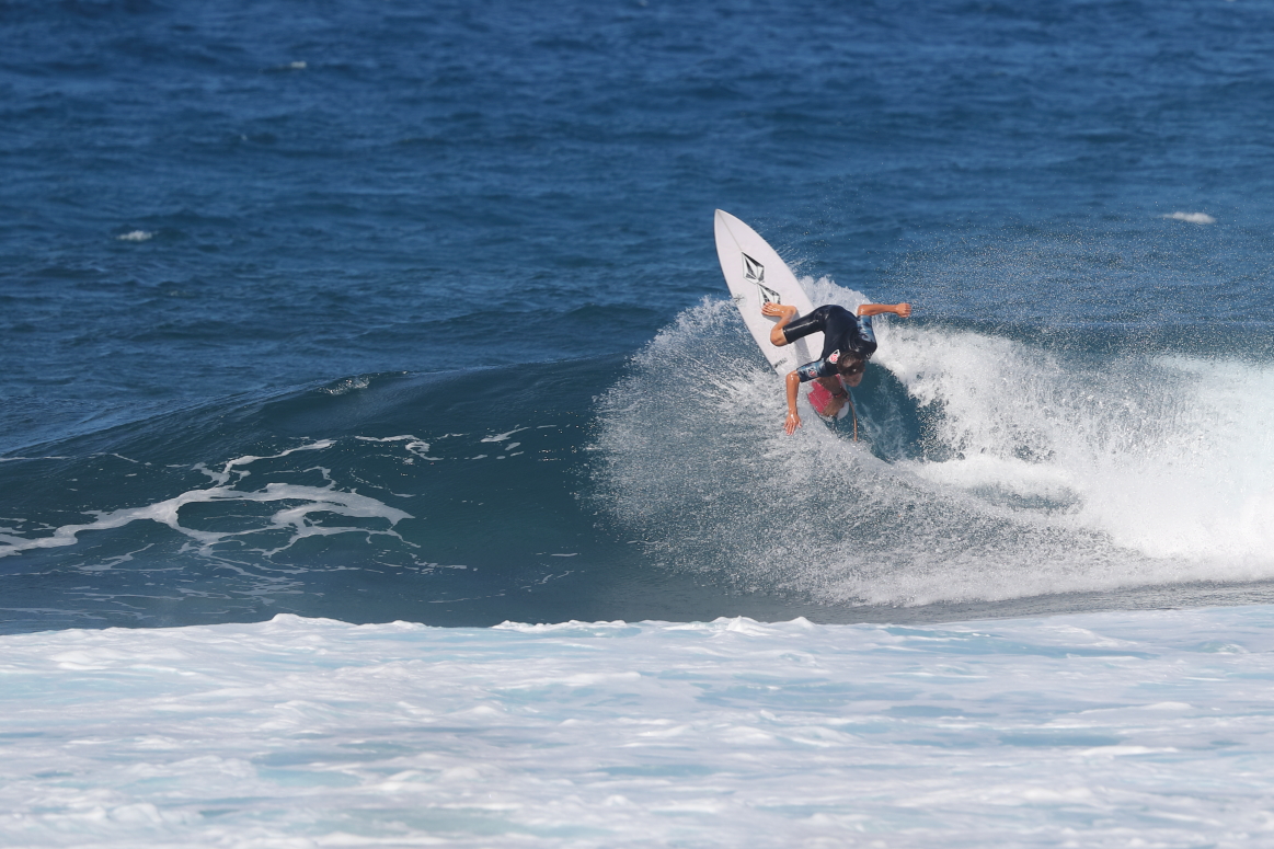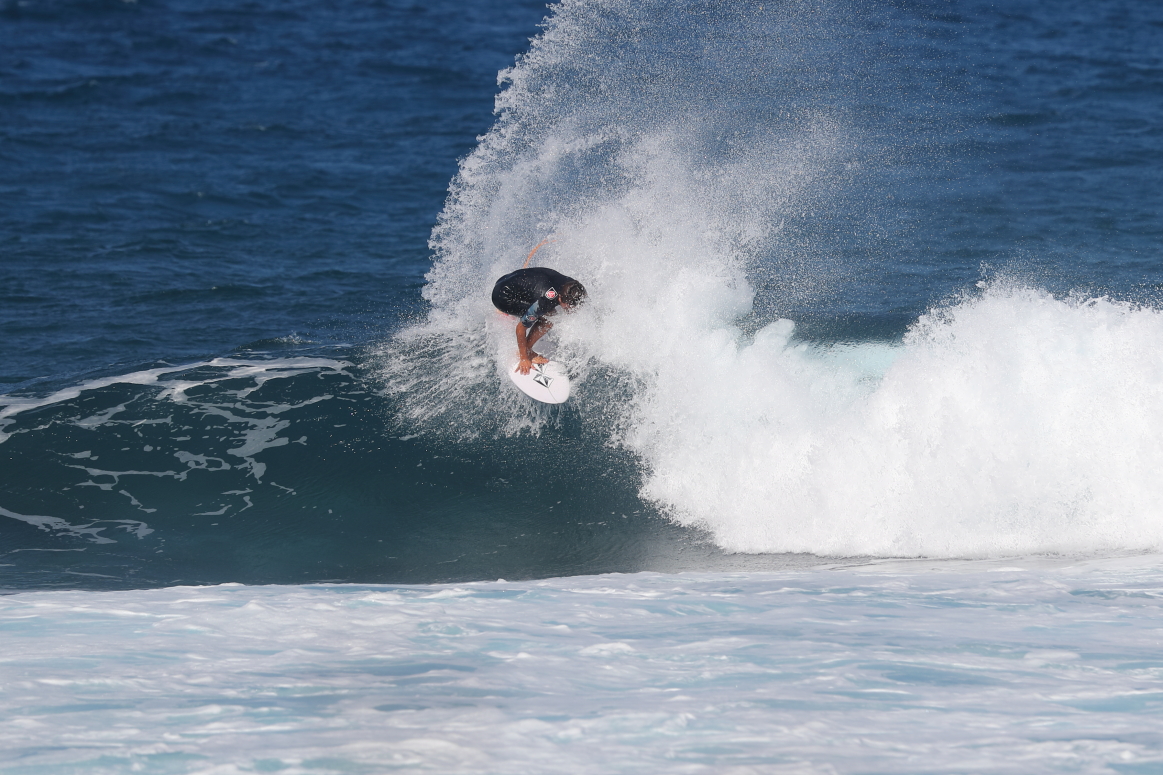 昨シーズン、ポルトガルで行われたISAワールドジュニアの大会中に負った足の怪我もだいぶよくなり、ハワイでは調整を兼ねて徐々にサーフィンしているようだが、見ている感じここロッキーでのアクションだけでなく、パイプ、バックドア、オフザウォールでのチューブ・パフォーマンスにおいても流石なライディングを見せてくれる西慶次郎。