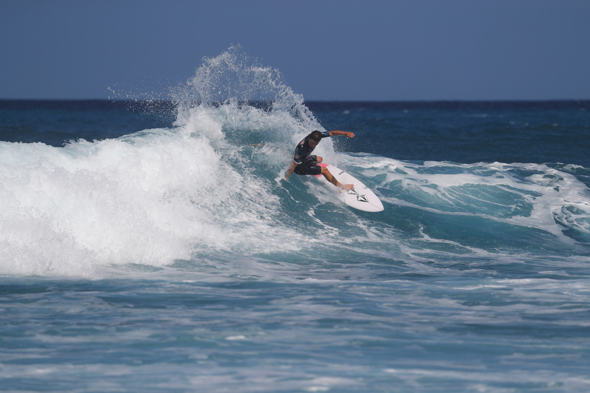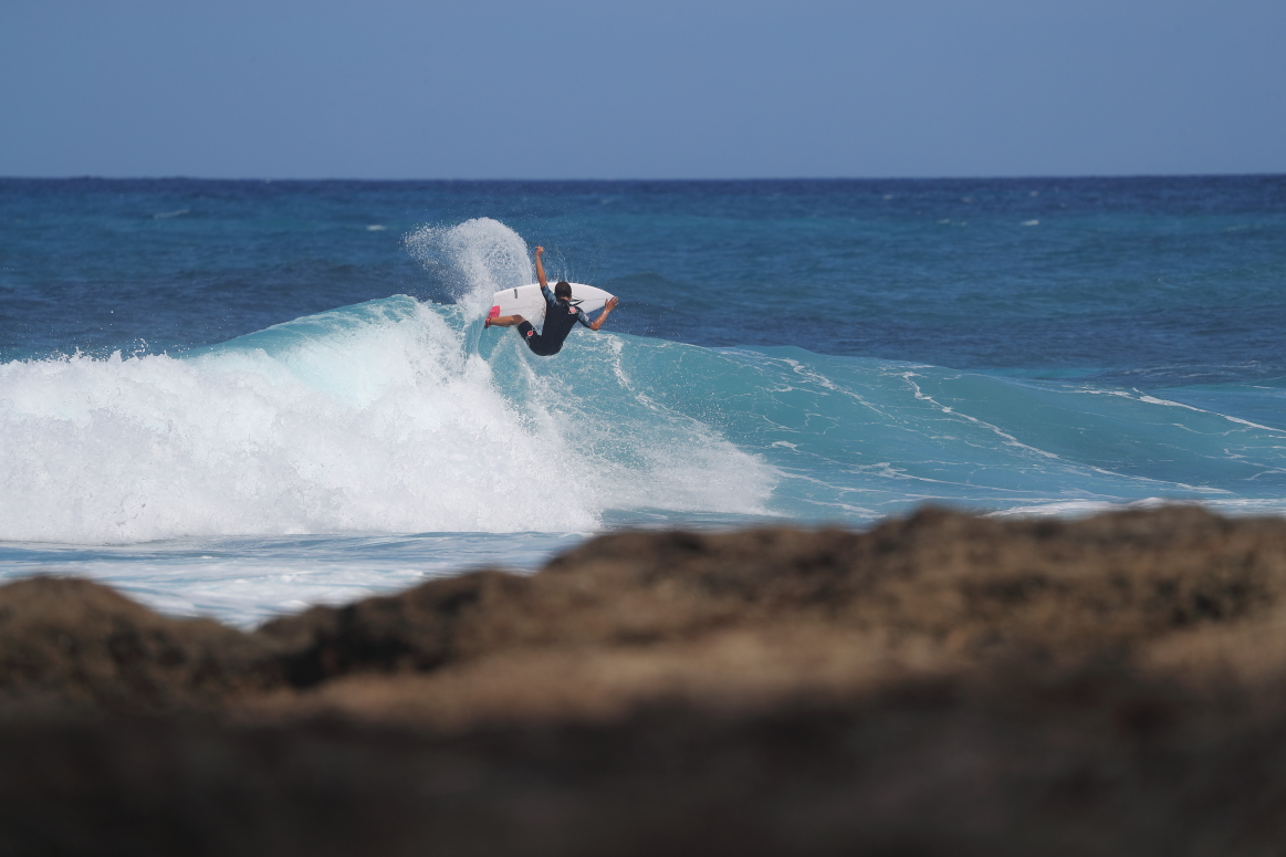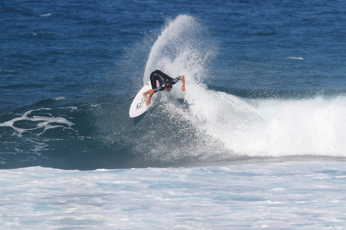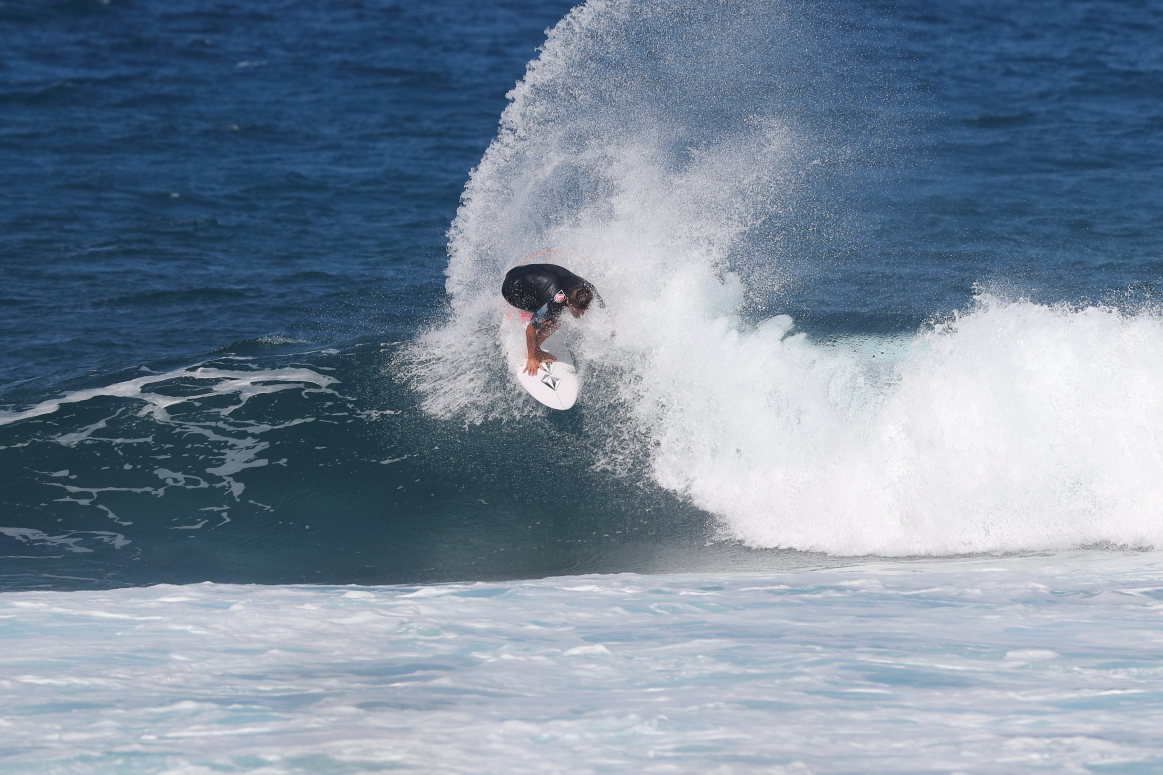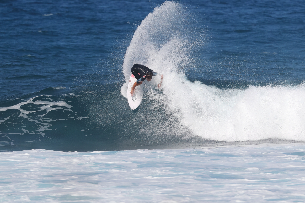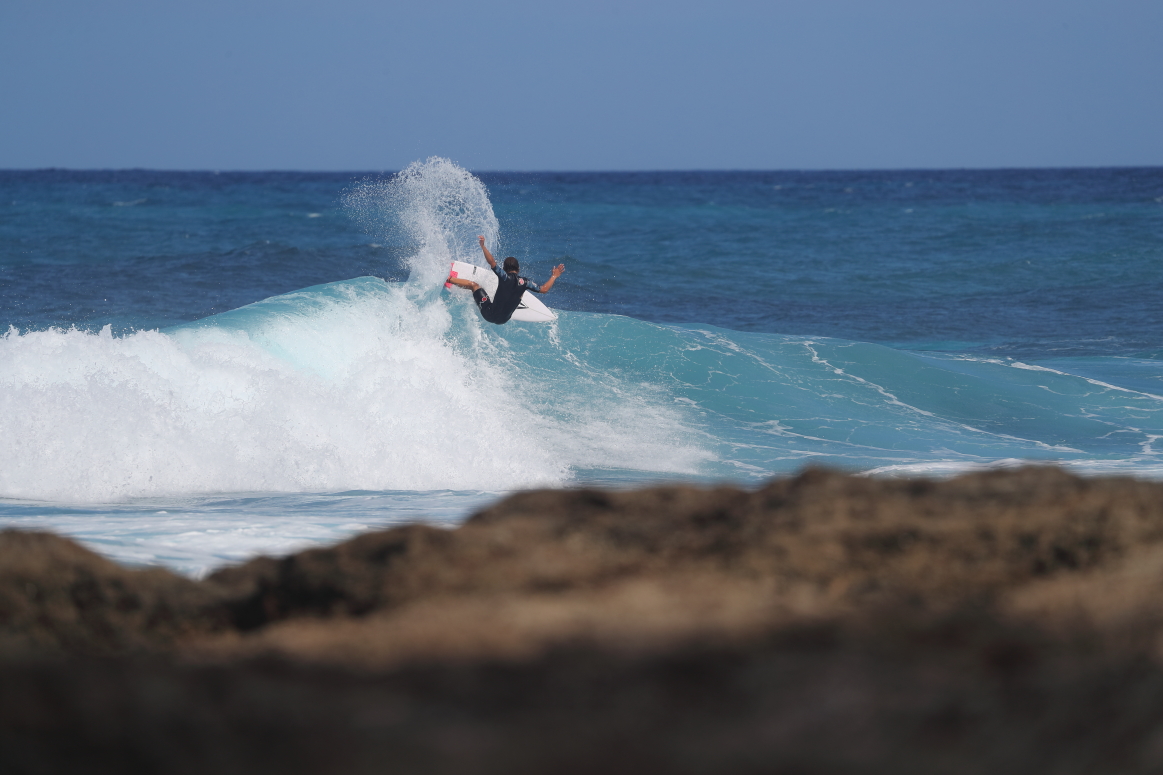 昨シーズン、ポルトガルで行われたISAワールドジュニアの大会中に負った足の怪我もだいぶよくなり、ハワイでは調整を兼ねて徐々にサーフィンしているようだが、見ている感じここロッキーでのアクションだけでなく、パイプ、バックドア、オフザウォールでのチューブ・パフォーマンスにおいても流石なライディングを見せてくれる西慶次郎。
