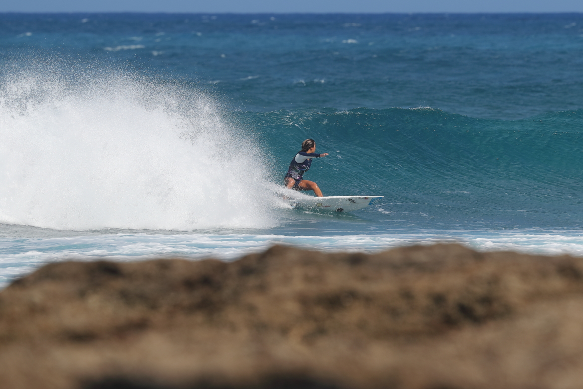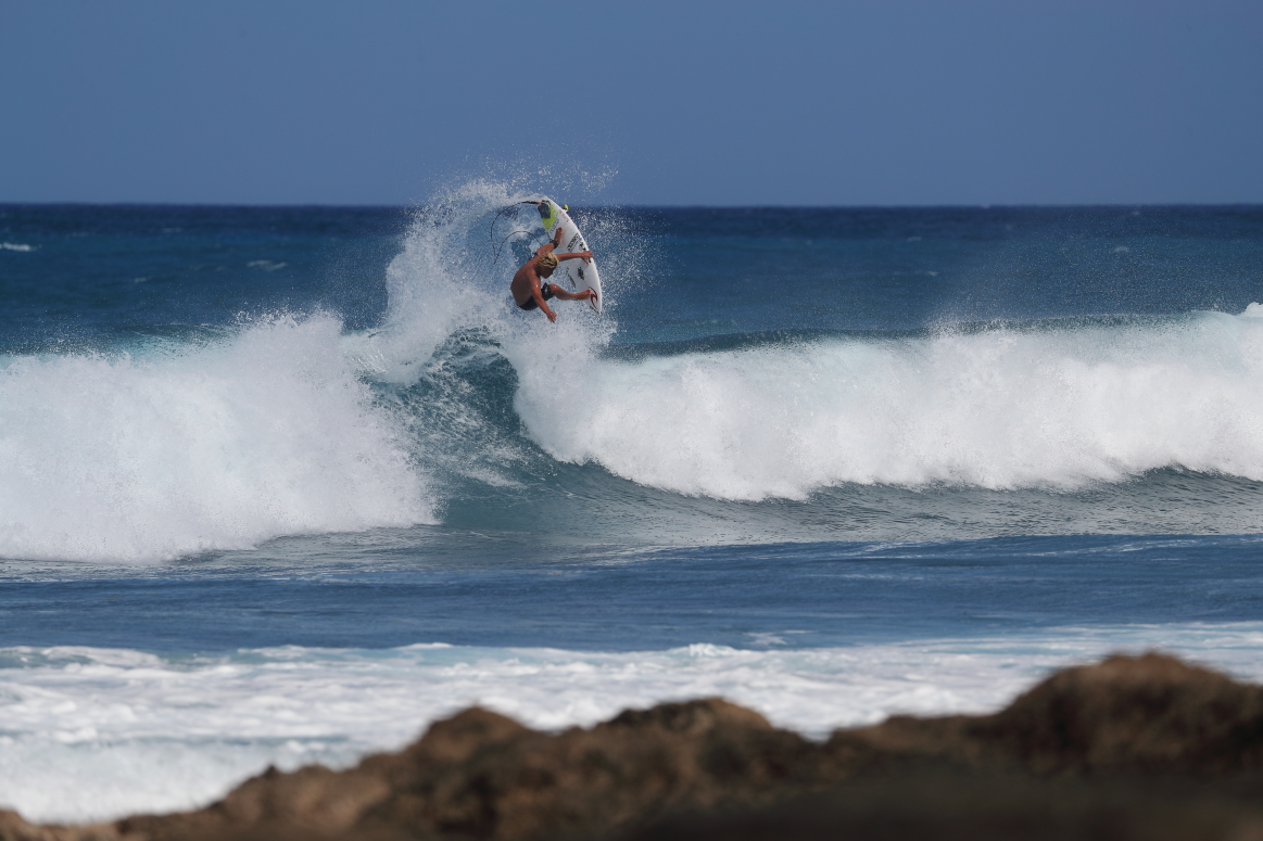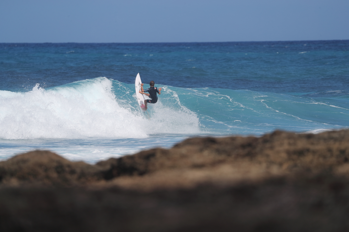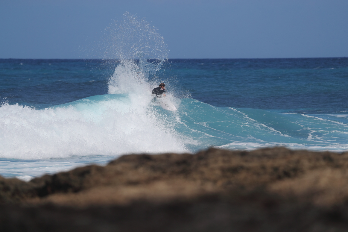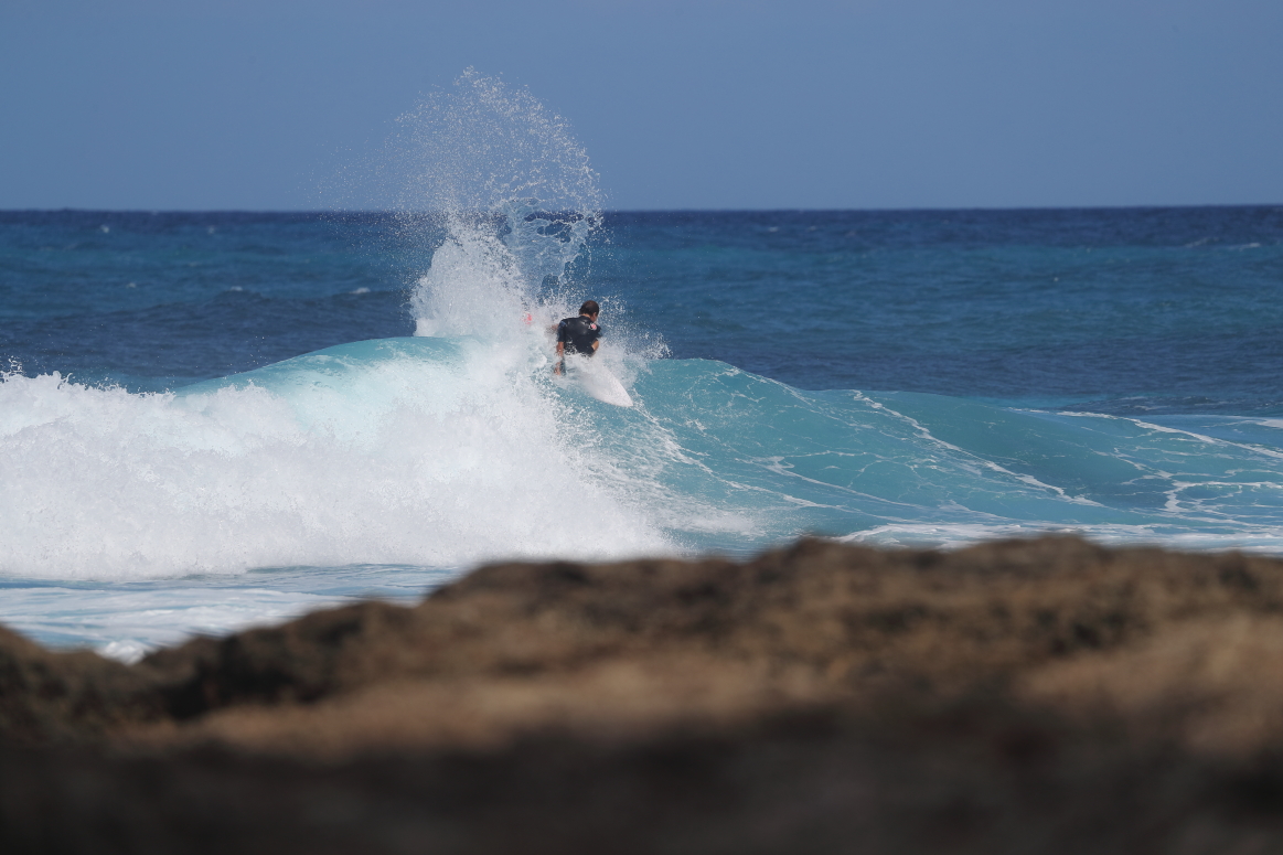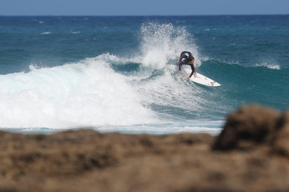 昨シーズン、ポルトガルで行われたISAワールドジュニアの大会中に負った足の怪我もだいぶよくなり、ハワイでは調整を兼ねて徐々にサーフィンしているようだが、見ている感じここロッキーでのアクションだけでなく、パイプ、バックドア、オフザウォールでのチューブ・パフォーマンスにおいても流石なライディングを見せてくれる西慶次郎。