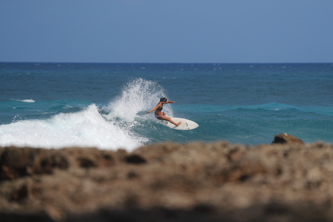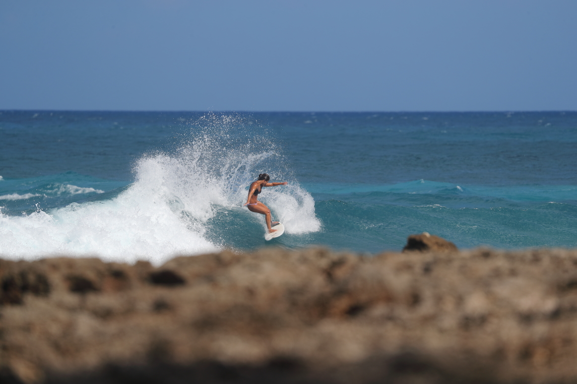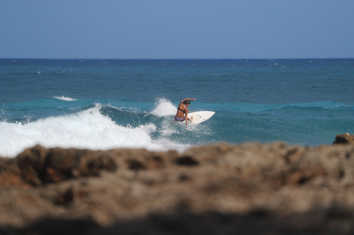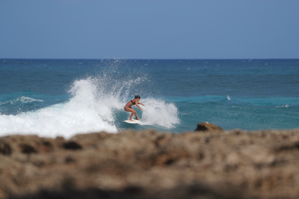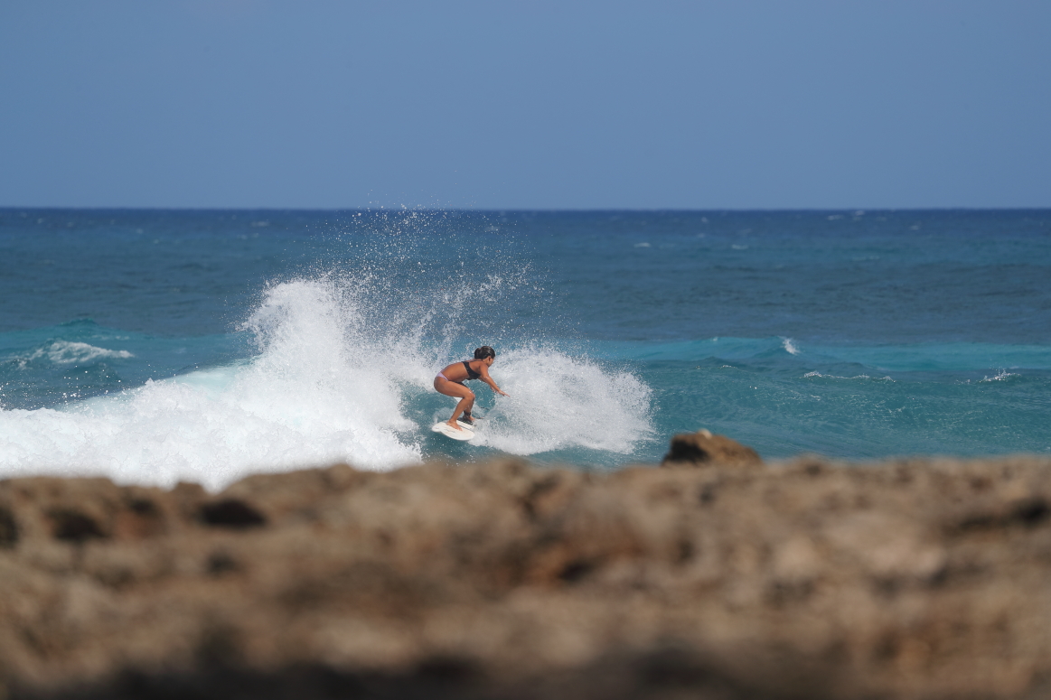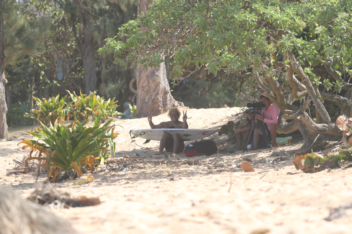 海に到着するとすでにそこには西湘出身の十代の若手プロサーファー鈴木姫七とハワイ出身の若手プロサーファー姉妹、西本エミリ&ジュリの西本姉妹がリッピングする姿が。