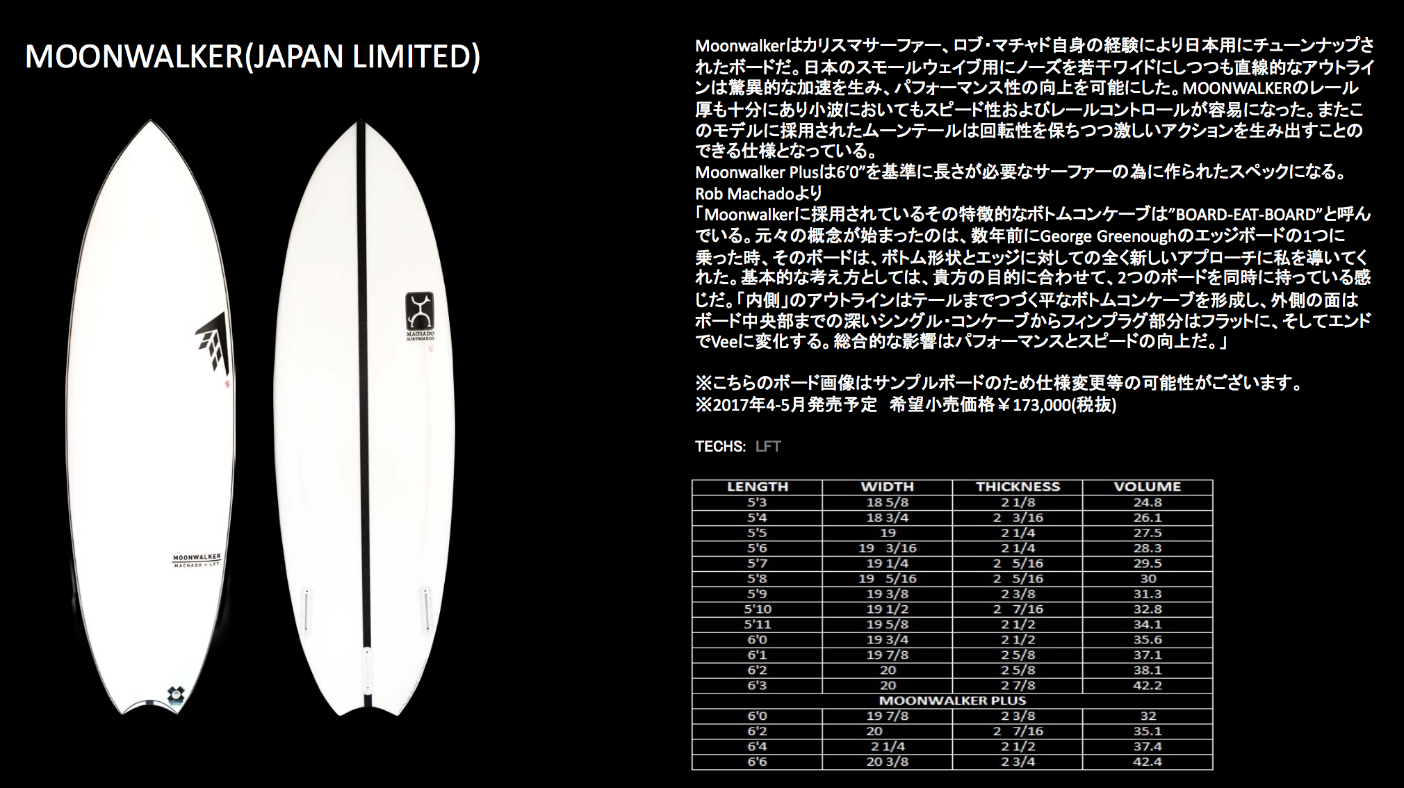世界最先端のテクノロジーと世界最先端のサーフボードデザインで世界中のサーファーたちを魅了するFIREWIRE surfboardsより、注目の2017年最新日本限定モデルのひとつ”MOONWALKER”がリリースされることが決定!!