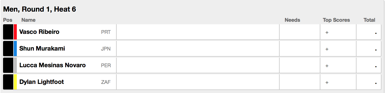 さらにMENSのラウンド1では、ヒート6に村上舜が出場となり、Vasco Ribeiro(PRT)、Lucca Messings Novaro(PER)、Dylan Lightfoot(ZAF)と対戦。
