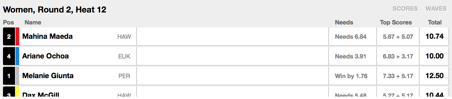 Womensのラウンド2の全ヒートに加え、MENSのラウンド1のヒート3までが消化されたこの日、Womensでは田代凪沙、野呂玲花、前田マヒナの3名がラウンド3へ進出!!