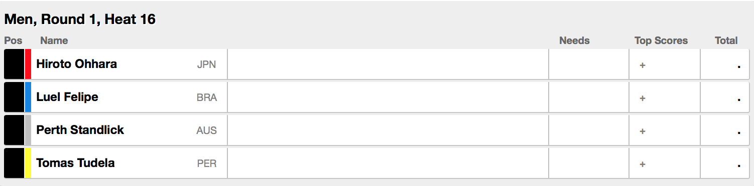 ヒート16では大原洋人がLiel Felipe(BRA)、Perth Standlick(AUS)、Tomas Tudela(PER)と対戦。