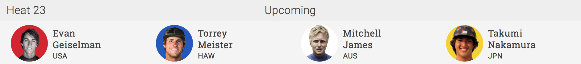 Evan Geiselman(USA)、Torrey Meister(HAW)、Mitchell James(AUS)と対戦予定となっている!