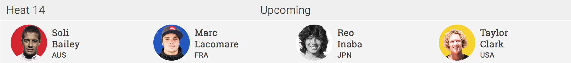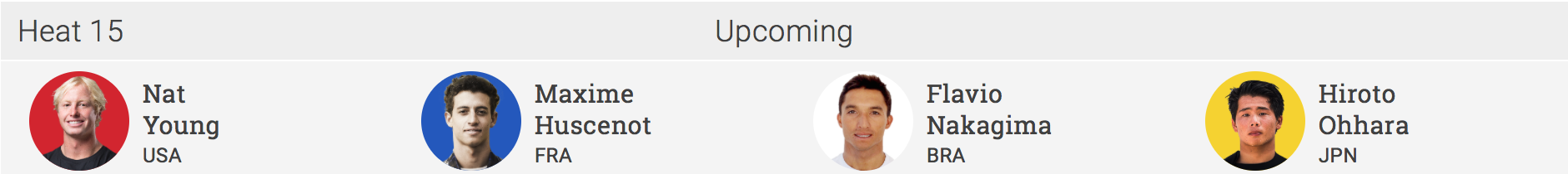続くヒート15では大原洋人がアメリカを代表するCTサーファーのひとりであるNat Young(USA)をはじめ、Maxime Huscenot(FRA)、Flavio Nakagima(BRA)を迎え撃つ!