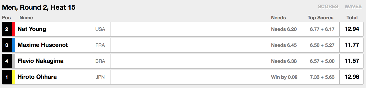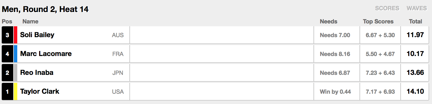 迎えるラウンド3ではヒート8で大原洋人と稲葉玲王が同じヒートに組み込まれ、Adam Melling(AUS)、Leonardo Fioravanti(ITA)と対戦予定。