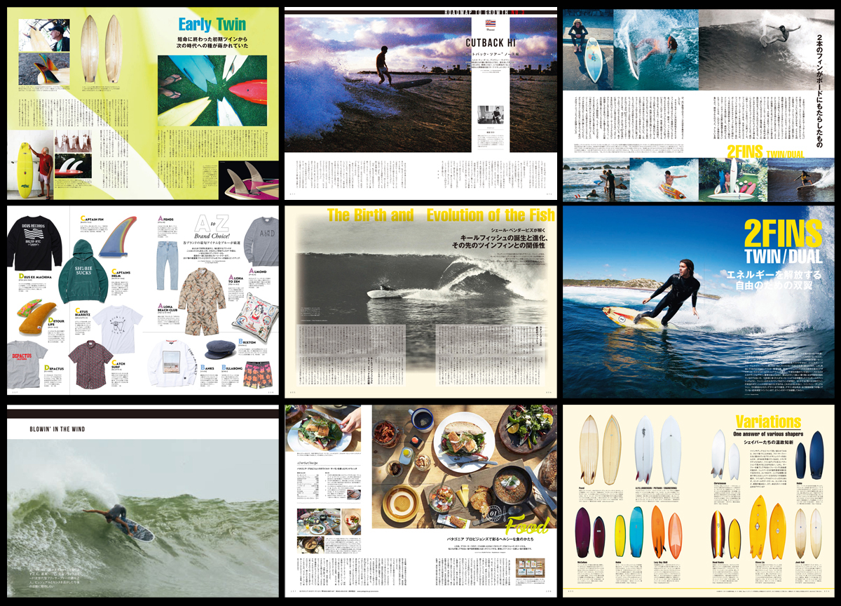 Blue.64号は、そんなツイン&デュアルフィンが歩んできた歴史と魅力を徹底検証。1960年代から’70年代、’80年代へと至る流れ、フィッシュの誕生、シモンズとの関連性、そして現代へ……。