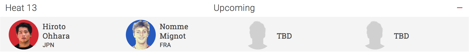 ラウンド1終了後に行われる予定のラウンド2では、ヒート6に仲村拓久未、ヒート8に大橋海人、ヒート14に森友二が出場。