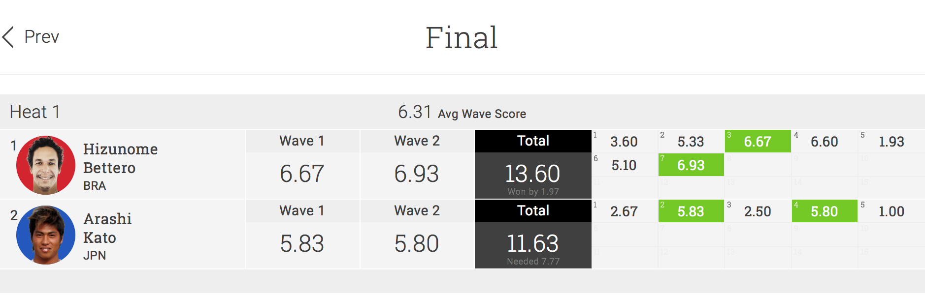 Hizunome Bettero(BRA)との一騎打ちとなったファイナルでは、最終的に逆転に必要なスコア7.77ptという状況だったが、クォーターファイナルでは8.00pt、セミファイナルではハイエストスコアとなる8.10ptをマークしていた加藤嵐だけに、最後にセットが入れば十分に逆転の可能性もあった。