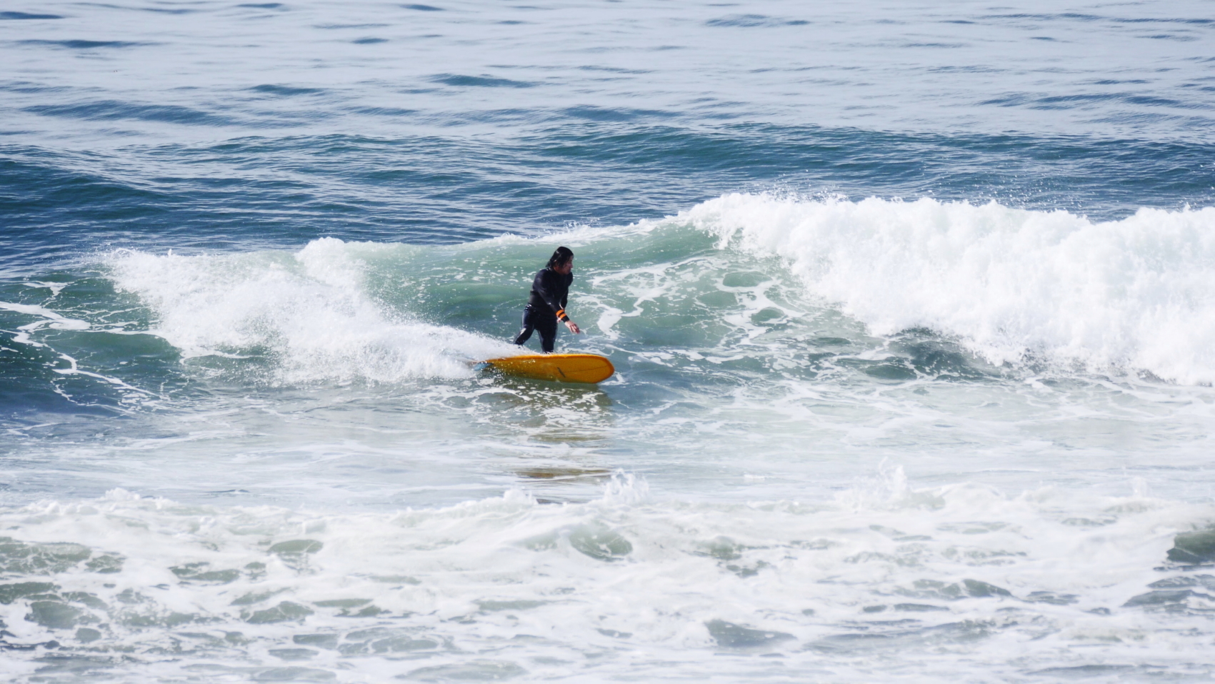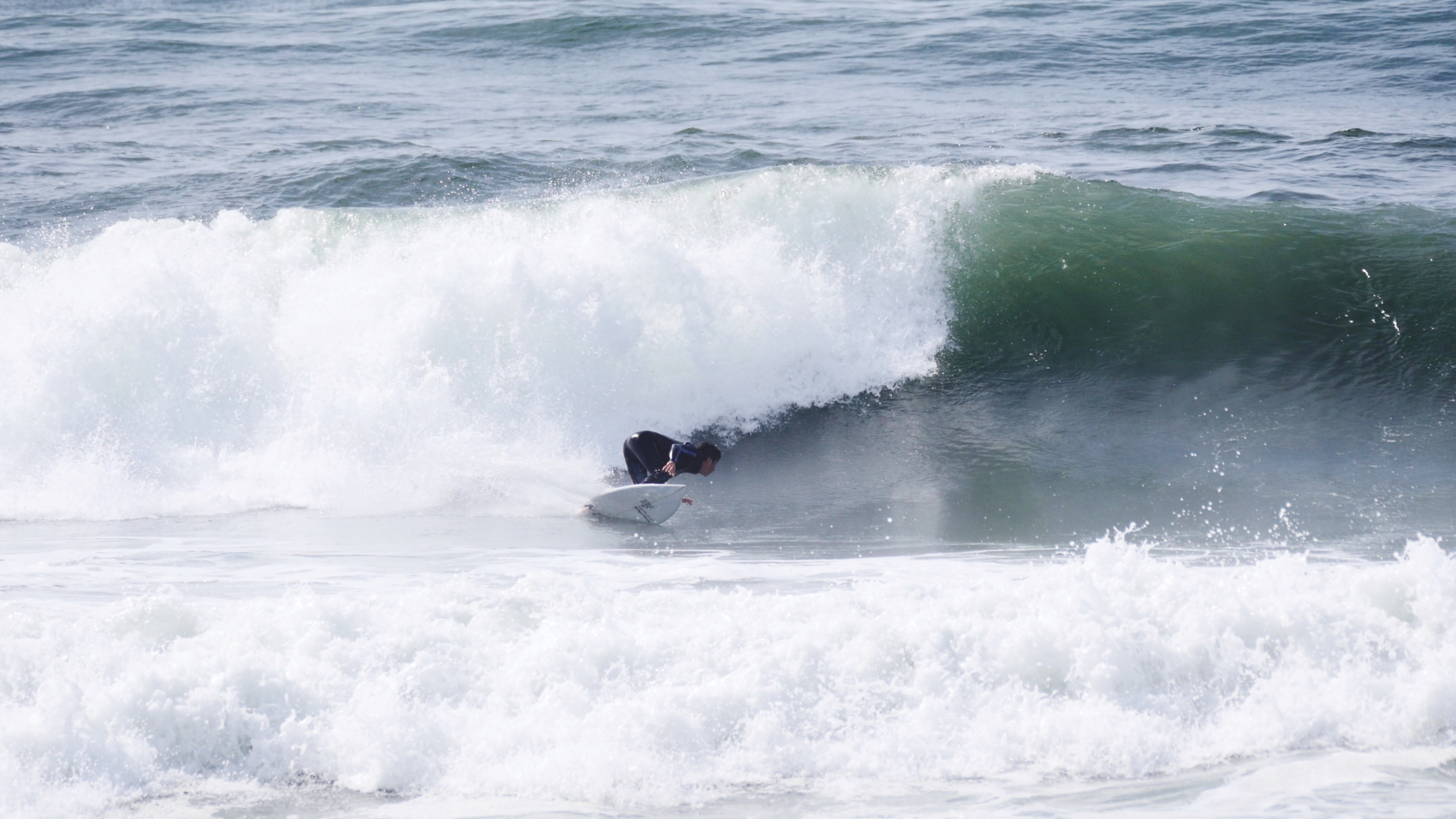 場所によっては頭半前後の波が入る場所もあり、久しぶりの頭オーバーのコンディションとなった4/12(水)の湘南エリア。
